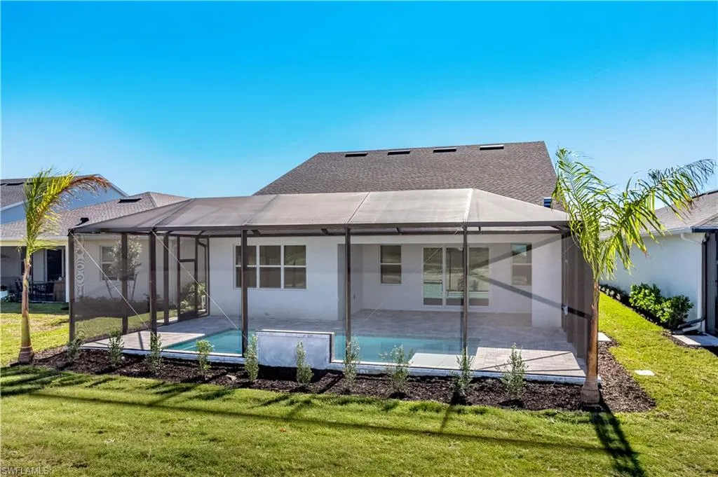 Welcome to The Riverland—a beautifully designed new-construction single-family home with a private pool, located in the heart of Babcock Ranch where sustainability and modern luxury blend seamlessly to create an exceptional lifestyle. Every detail in this thoughtfully crafted residence showcases comfort, functionality, and timeless elegance. Enjoy exceptional indoor-outdoor living with a large covered lanai that overlooks the beautifully designed pool, creating the perfect backdrop for relaxation, gatherings, or soaking up the Florida sunshine. Step inside to an inviting foyer that flows effortlessly into a bright, open-concept great room and casual dining area. Expansive windows fill the space with natural light, while upgraded tile flooring runs throughout—providing a clean, contemporary look with easy maintenance. At the center of the home is a stunning gourmet kitchen, ideal for daily living and entertaining alike. It features sleek quartz countertops, wood cabinetry with soft-close drawers, an oversized center island, and a spacious walk-in pantry. The primary suite is a serene retreat tucked privately at the rear of the home, offering tranquil views. The spa-inspired en suite bathroom includes dual sinks, an expansive, dual-head shower, and a generous walk-in closet—transforming everyday routines into a luxury experience. Built with quality and comfort in mind, this home features hurricane-impact windows and doors and is constructed to the latest building codes for ultimate peace of mind. Located within Regency at Babcock Ranch, the premier gated 55+ natural gas community within the prestigious Babcock Ranch master plan, residents enjoy a full resort-style amenity center just a short walk from home, offering an unparalleled, maintenance-free, resort-inspired lifestyle. Please see MLS supplements for interior design selections and floor plan layout. Lot 4770