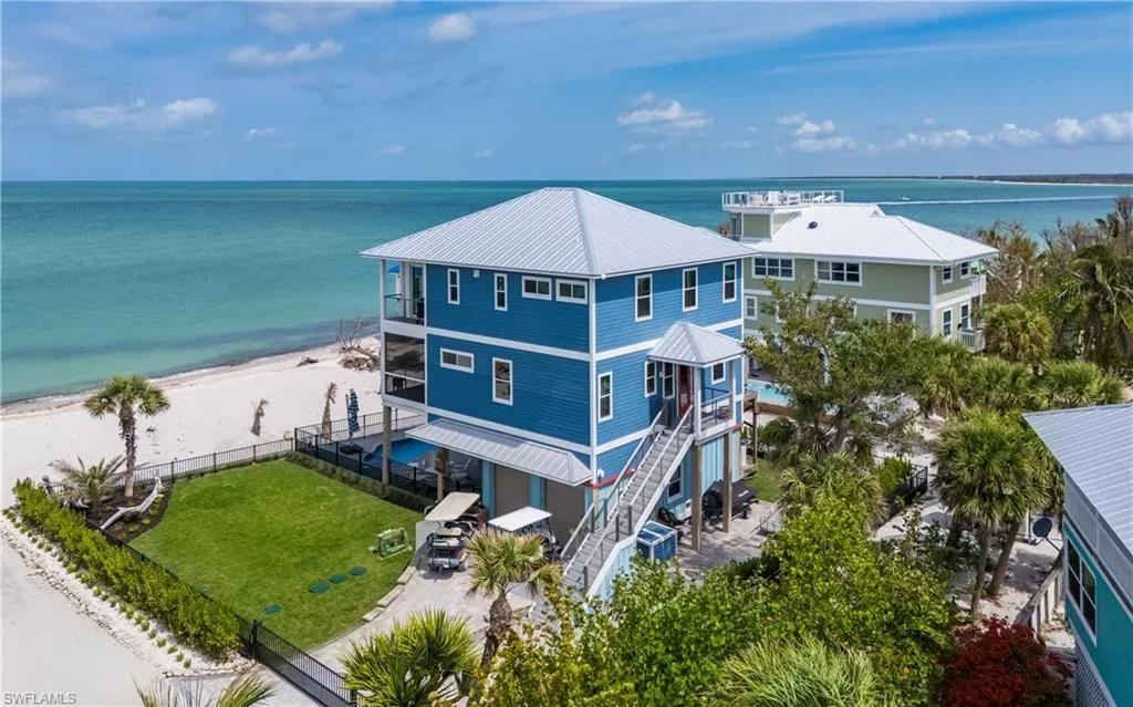 Gulf-Front Luxury Living on the beach of North Captiva Island. Welcome to your private slice of paradise on the pristine shores of the Gulf of Mexico. This extraordinary home spans two large home sites strapped together and offers the ultimate in island living, where breathtaking sunsets paint the sky each evening. Panoramic views of the gulf, Captiva Pass, and Cayo Costa Island. Thoughtfully designed for comfort, convenience, and style, this home features a whole-house reverse osmosis system, a 1,000-gallon propane tank fueling a full-house Kohler generator, a gas stove, and a tankless water heater. You can ensure you will never be without power. The gourmet kitchen is outfitted with high-end appliances, including a propane gas stove, perfect for entertaining. Sliders across the west to be sure not to miss the spectacular views. Large outdoor spaces with an elevated deck beneath the home, an outdoor refrigerator, and an icemaker. Host gatherings easily thanks to a heated saltwater pool, six-person spa, full outdoor entertainment system, and an outdoor shower. The spacious, climate-controlled garage includes A/C and extra room for golf carts, bicycles, beach gear, a work bench, and a convenient service elevator, making transporting groceries and luggage a breeze, holding up to 300 lbs. The fully fenced yard is complete with well-maintained green grass and a sprinkler system. Best of all, this home has its private well and septic, which is not shared. Whether you’re seeking a tranquil retreat or a spectacular space to entertain, this property offers unmatched comfort and coastal charm, all steps from the turquoise waters of the Gulf of Mexico. Don’t miss this rare opportunity to own a piece of paradise where every day ends with a front-row seat to one of the most beautiful sunsets in the world. This home has unlimited investment opportunities. Weekly rentals are popular on the island, and this retreat has the potential to make your investment a profitable one or for your enjoyment. With this two-lot site and endless opportunities, this will not last. This property comes with a one-year membership to the Island Club at North Captiva. Come by boat or Ferry. There are no overnight dock slips unless you purchase one. There are 2 memberships available in Safty Harbor with dockage and other amenities. Call Safety Harbor for details. The airstrip is utilized by members only. The association is known as Salty Approach. Schedule your private showing today.