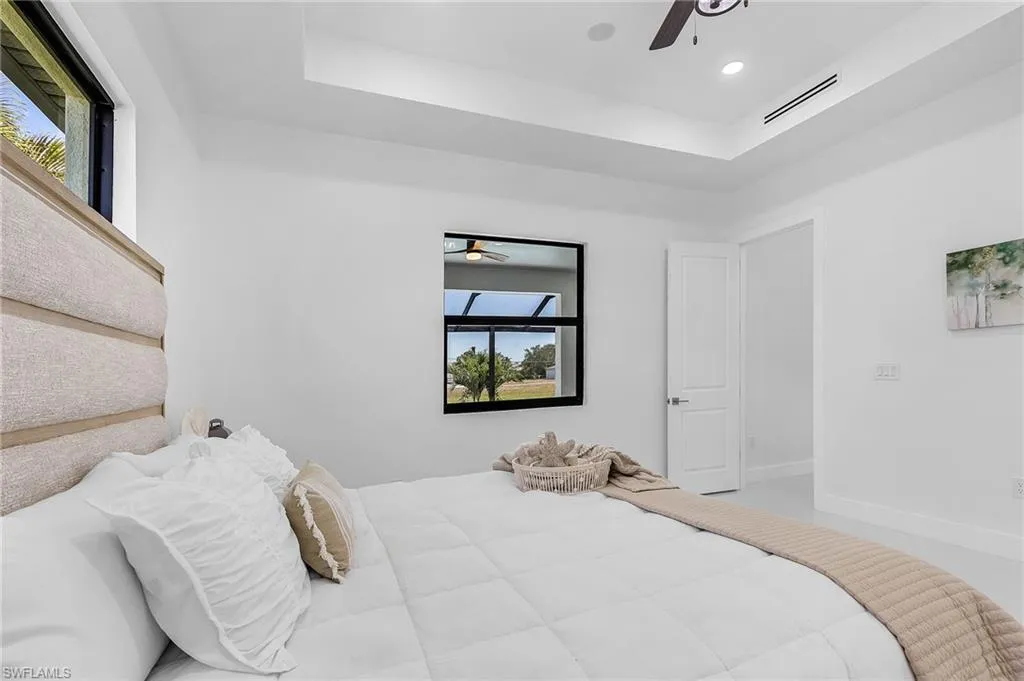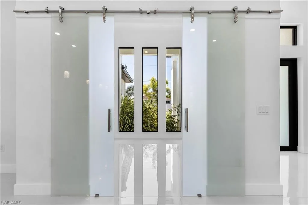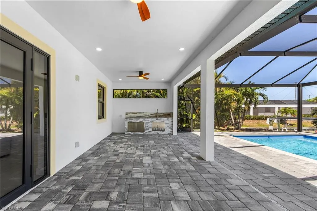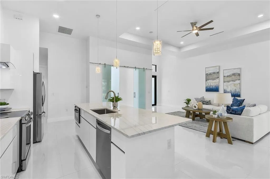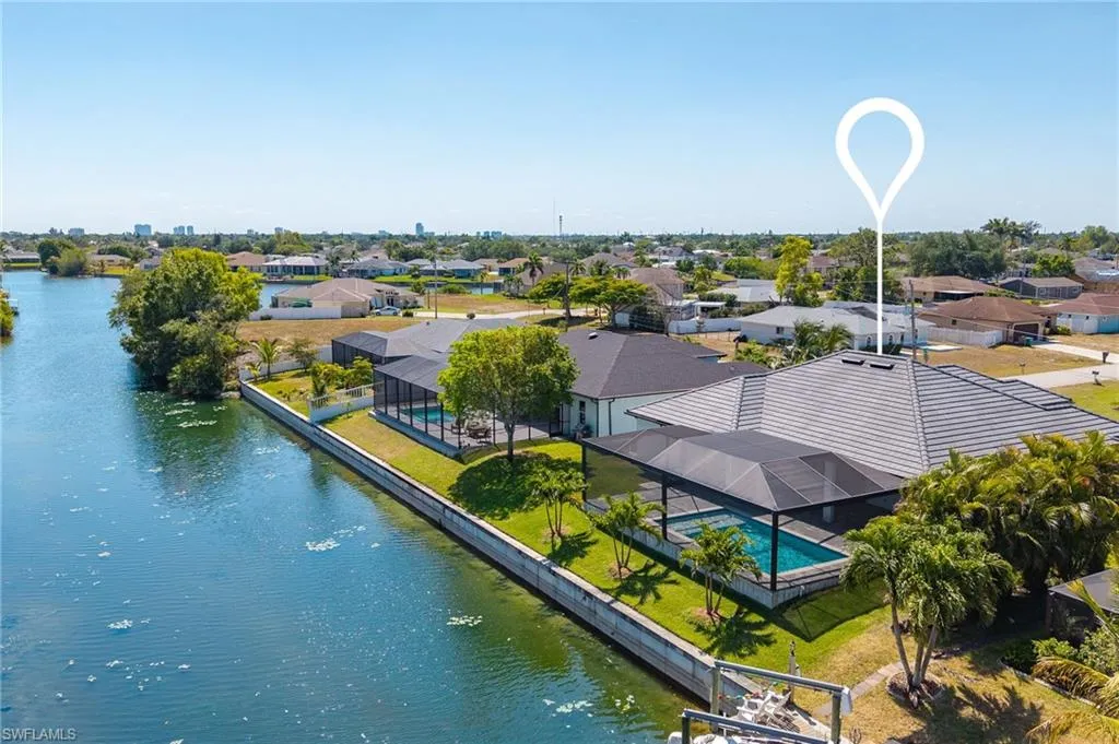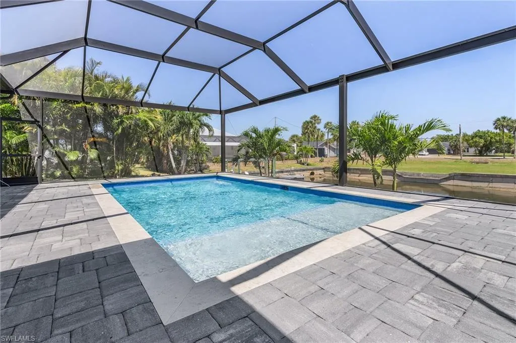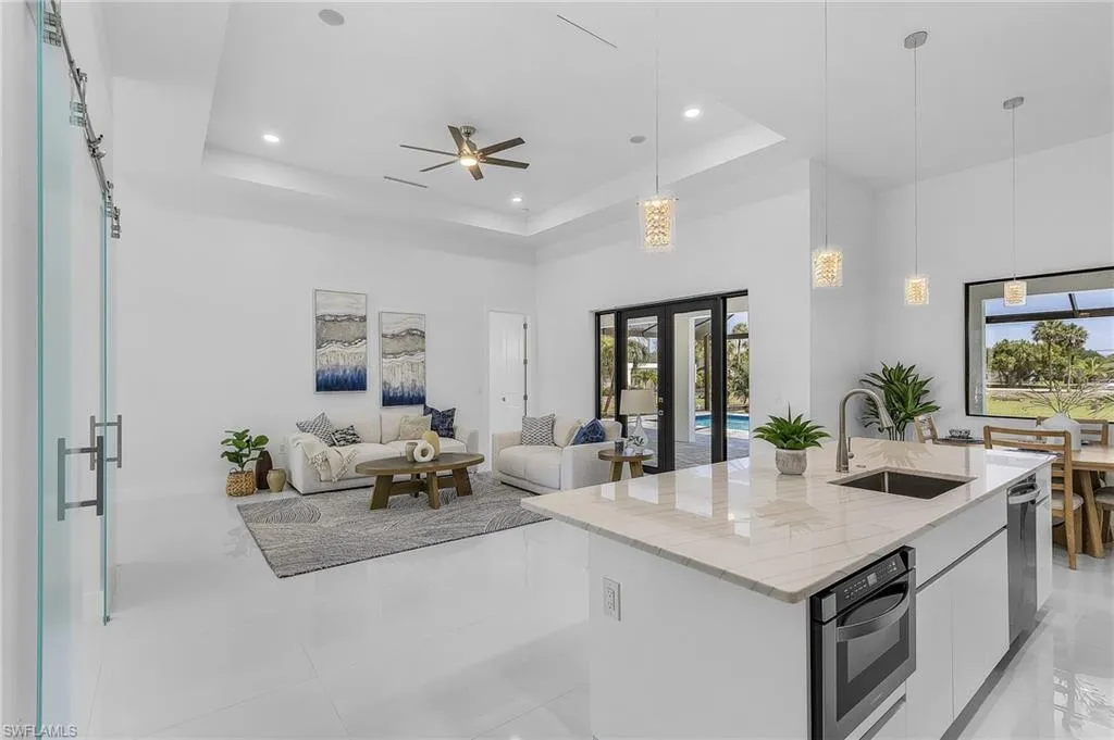 ALL ASSESSMENTS PAID! NO Flood Insurance Required! NO HOA Fees! Stunning Waterfront Pool Home with Designer Finishes! Experience luxury living in this beautifully appointed, newly constructed, 3-bedroom + den, 3-bathroom single-family home nestled on a serene freshwater canal. This residence showcases exceptional craftsmanship and high-end finishes, including sleek white quartz countertops, modern white cabinetry, and top-tier stainless steel appliances in a gourmet kitchen designed to impress. The open-concept layout features soaring coffered ceilings and exquisite Spanish tile flooring throughout, complemented by impact-resistant windows and a concrete tile roof providing an additional element of safety to its already superb construction. The versatile den is enhanced by stylish frosted glass barn doors and dramatic floor-to-ceiling windows that flood the space with natural light, perfect for a home office or guest room. Step outside to your private paradise: a spacious outdoor living area under truss, complete with a full outdoor kitchen, paver circular driveway, finished garage floor, and lush, mature landscaping. Enjoy sunset views from your canal-front backyard, secured with a seawall and ideal for kayaking or fishing. Located close to major roads, shopping, dining, and everyday conveniences, this home combines elegant living with unbeatable access. Don’t miss the chance to own this extraordinary property!