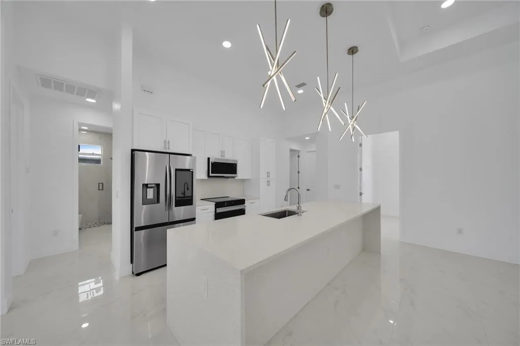 Welcome to your dream home! Nestle in a prime location!!This stunning new construction residence seamlessly blends luxury, comfort, and functionality. With 4 spacious bedrooms, and 3 full bathrooms, this home offers the perfect layout for families or those who love to entertain. Sleek tile flooring throughout, impact windows and doors, outdoor kitchen, central water and sewer, screen pool with spacious patio area and a 3-car garage plus a circular driveway for ample parking and curb appeal.