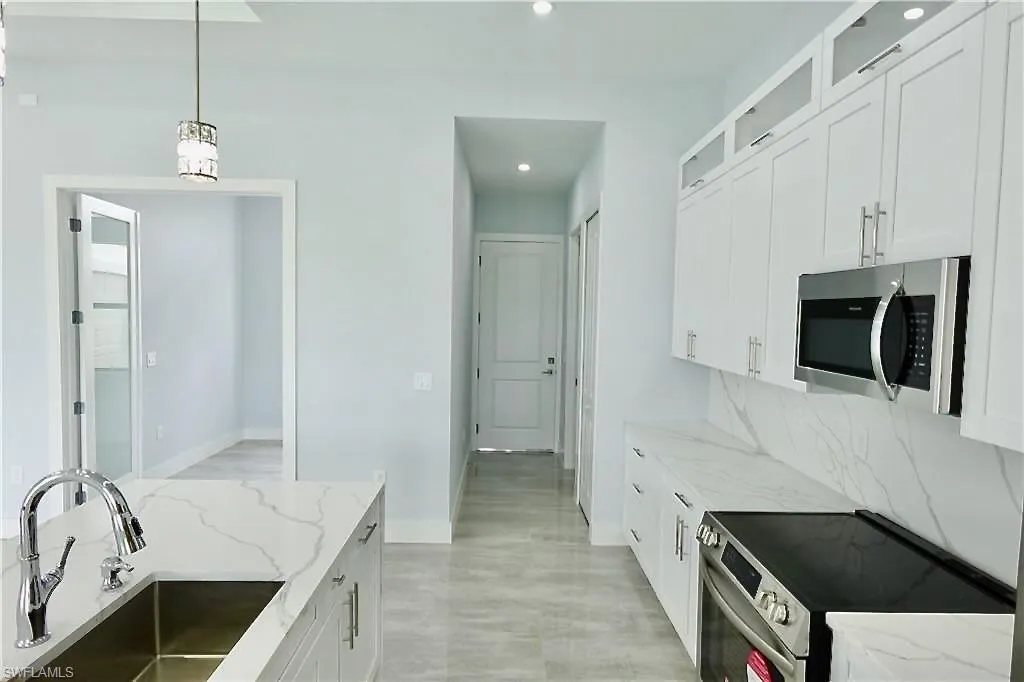 Home Features: ALL SS Kitchen Appliances, Washer, Dryer, Tray Ceilings, Stone Kitchen Countertops, Stone Bathroom Vanities, Tall Custom Kitchen Cabinetry, Kitchen Pantry Closet, In House Laundry room with Closet, Energy Efficient Impact Windows/Doors, Outdoor Built-in Kitchen w/Gas Cooktop & Sink, Gutters ALL Around, Stone Paver Driveway, Tiled Lanai, Epoxy Garage Floors, Sprinkler System, ALL of our rooms include one or more of the following: Lighting fixture/Ceiling Fan/Recessed lights.