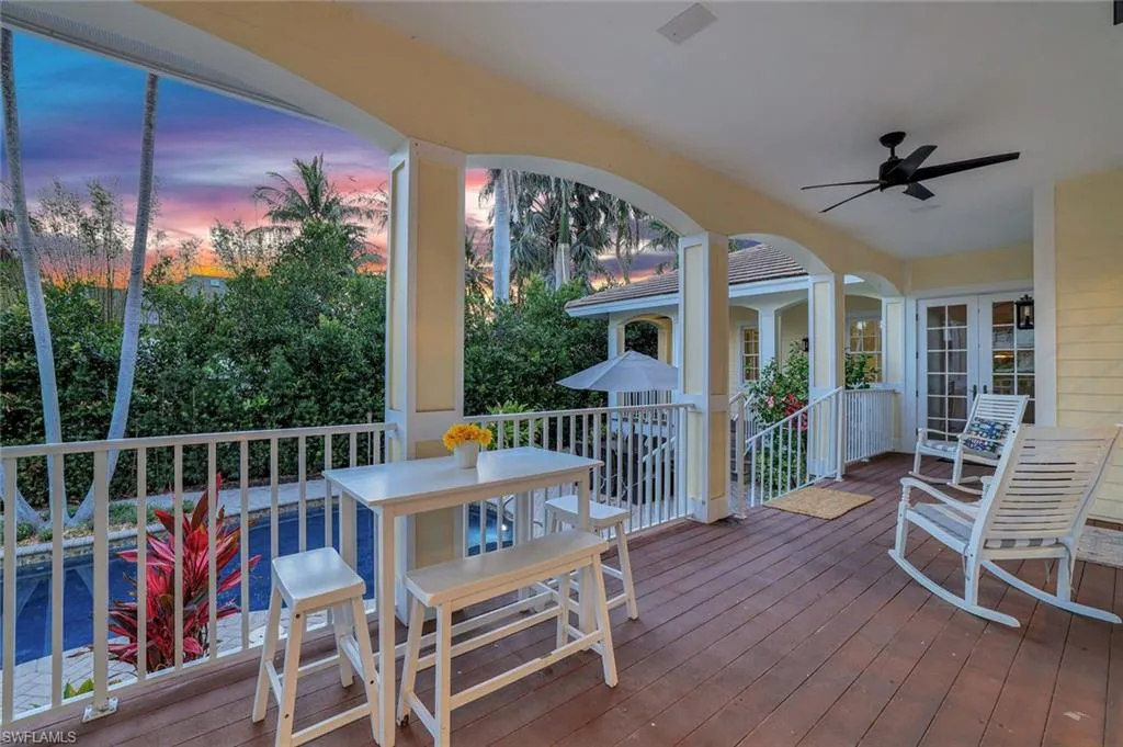 Perfectly situated just one block from Naples’ pristine beaches, this stunning two-story Old Florida residence combines charm, luxury, and convenience. Boasting 5 bedrooms plus a den, 5 full & 2 half baths, and sprawling across 5,368 square feet, this home provides generous living space ideal for families or multi-generational use, featuring owner’s suites conveniently located on both levels.