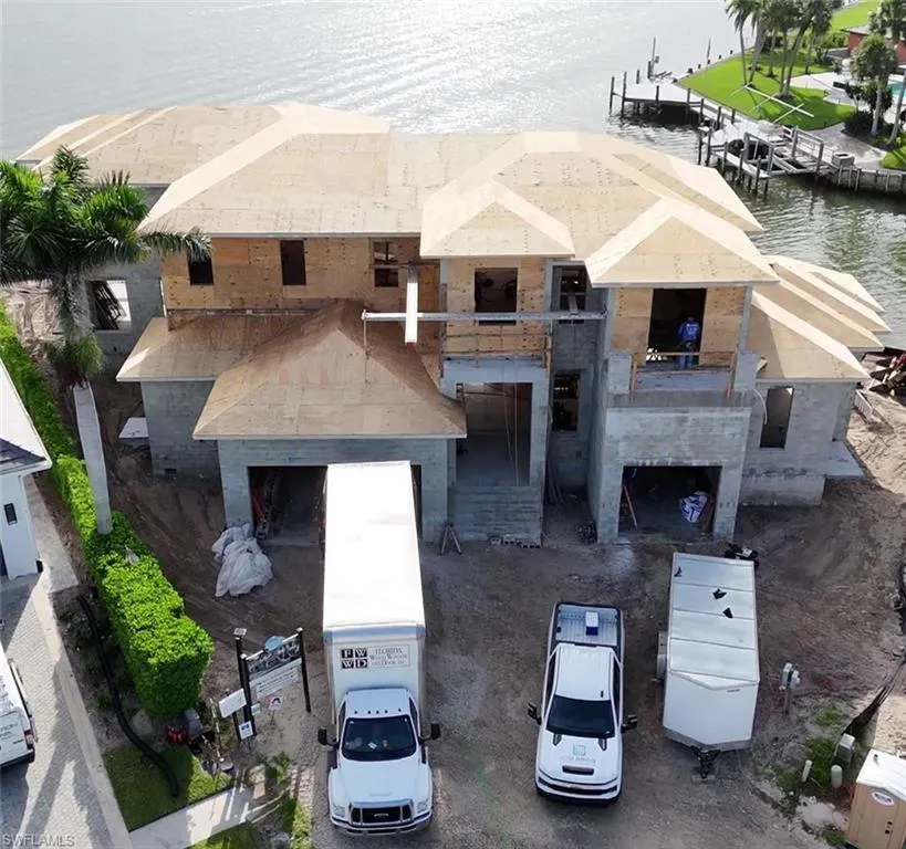 Impressive, custom-built home by The Lykos Group, Inc. situated on the very few key lots left in Marco Island with stunning views and direct access (no bridges) just minutes by boat to the Gulf of America, Isle of Capri, Marco Island Yacht Club, World Famous Snook Inn. Over 170 feet of river frontage, serene paradise with an abundance of bird watching, wildlife, dolphins, manatees and crystal clear water views An amazing 6,230-square-foot estate home featuring five bedrooms, club room, loft, home office/exercise room, three car garage with an option of adding two car lifts, private elevator, whole home generator, 500 gallon propane tank, featuring a second floor balcony rain-curtain waterfall into the resort style pool, exquisite materials and ceiling details are just some of the features to be found in this beautiful custom home. Ready for you to begin your dream of waterfront living Spring of 2026. Renderings are labeled.