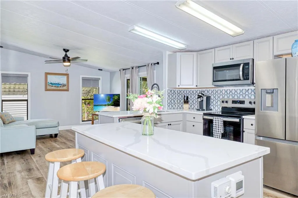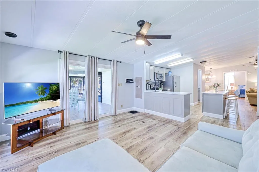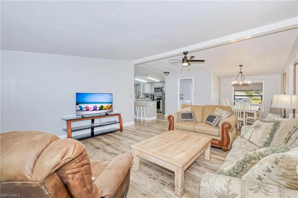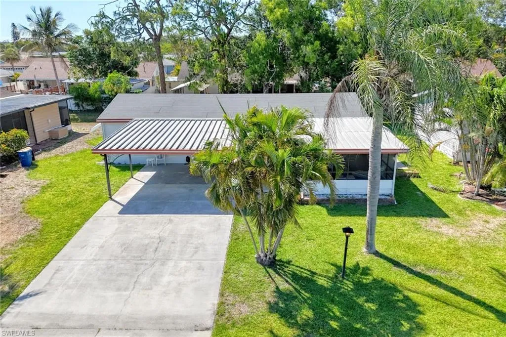Fresh Price Reduction – Seller Financing Available! Turnkey furnished 3-bedroom, 2-bath home on a rare deeded lot with co-op share in St. James Village, an active 55+ community just 4 miles from the beach in Bonita Springs. Fully remodeled with new plumbing, electrical panel, insulation, ductwork, kitchen, and guest bath. Enjoy luxury vinyl flooring, screened lanai, 2-car carport, storage/workshop, and RV/boat/motorcycle parking. Located in Flood Zone X with no flooding history. $95/month co-op fee covers lawn care, community pool, and hot tub. Rentals allowed up to 12 per year with 30-day minimum; unit is active on Airbnb for potential income. Cash buyers preferred, but seller financing available with 20% down. Affordable, move-in ready Florida living in a welcoming 55+ community!