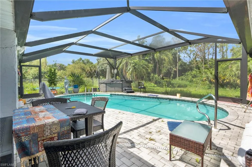 Step outside into your private screened-in pool area with an inground pool as well as a separate Hot Tub/Spa. New pool cage in 2022 with Super Screen and an electric pool heater—perfect for enjoying the Florida lifestyle in every season. Very secluded lot at the end of a cul-de-sac. Lots of privacy. Part of the lanai has been enclosed and converted into additional living space, cooled by a split AC unit, offering an ideal spot for a home office, hobby room, or bonus entertaining space.