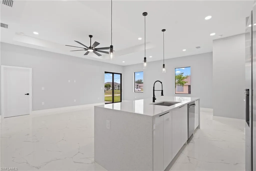 Discover this spacious single-family home featuring 4 bedrooms and 3 full bathrooms, situated on an oversized corner lot in one of Lehigh Acres’ most desirable neighborhoods. The modern kitchen boasts granite countertops and will be equipped with brand-new stainless steel appliances. The luxurious master suite includes a private bathroom with dual sinks, a large walk-in shower, and his-and-hers walk-in closets. Additional highlights include a two-car garage offering ample storage space, as well as impact-resistant windows and doors for enhanced safety and peace of mind. With construction now complete, this home is ready for immediate occupancy. Enjoy proximity to shopping centers, dining establishments, boating facilities, and all the best that Southwest Florida has to offer. Don’t miss the opportunity to own this incredible property!