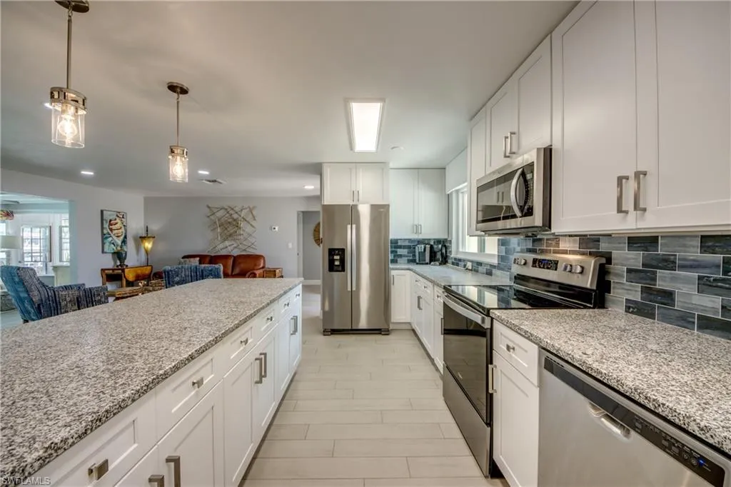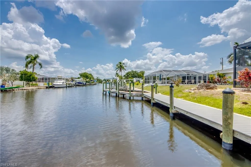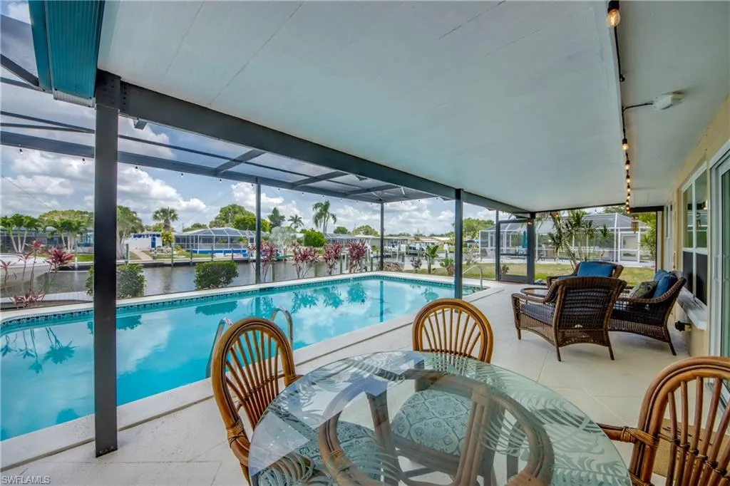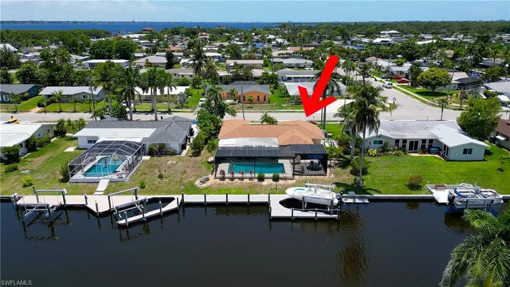 COASTAL LUXURY MEETS BOATER’S PARADISE in this sparkling gem tucked away in the coveted Waterway Estates—where sailboat access, wide canals and modern style come together in perfect harmony. If you’ve been searching for a Florida home that has it all, look no further. This stunning 3-bedroom, 2-bath retreat with a spacious 2-car garage boasts over 2,000 sq ft of refined living space, an oversized sparkling swimming pool and every upgrade that matters—all sitting on a prime 100’ wide sailboat access canal just minutes to open saltwater. Let’s talk about the water: No bridges. No locks. No delays. Just you, your boat and the Caloosahatchee River calling your name. With 2022 construction, you’ll LOVE this $50,000 wraparound dock, featuring a 10k lb boat lift, kayak launch and captain’s walk, you’re ready for fishing, cruising, or spontaneous sunset rides on a whim. Inside, it’s just as impressive. The wide open great room floorplan showcases plank tile flooring throughout entire home and expansive windows flooding the home with natural light and peaceful water views. The updated kitchen is a true showpiece, with 36” soft-close shaker cabinetry, gleaming quartz counters, stainless steel appliances and an oversized prep island that’s perfect for entertaining—or just showing off your culinary flair. The split-bedroom layout offers ideal privacy for guests and both the master and guest bathrooms have been beautifully remodeled with high-end finishes that echo the home’s modern, cohesive style. The primary suite opens directly to the lanai—offering easy access to the sparkling pool for a moonlit dip or sunny morning swim. But wait—there’s more. Impact windows (2022), a hurricane-reinforced garage door, updated electrical panel, newer HVAC and transferrable flood insurance mean peace of mind for years to come. And the extras? We’ve got those too: boat trailer pad, energy-efficient load management, newer pool pump and filter, a dramatic picture-frame pool cage, commercial toilets and dimensional shingle roof (2020). This home is polished, practical and perfectly positioned for the Florida lifestyle you’ve been dreaming of. Waterway Estates is a hidden gem—BOATER, RV, RENTER and PET FRIENDLY COMMUNITY with NO HOA, and just minutes to downtown, beaches, dining, medical and more. Convenience is key, and this location delivers. Just minutes from your front door, you’ll find everything from waterfront dining and boutique shopping to top-rated medical facilities, the VA Hospital, and everyday essentials like groceries and banking. Downtown Fort Myers is just a short drive away, offering a vibrant mix of culture, entertainment, and nightlife. Love the beach? You’re within easy reach of both Sanibel and Fort Myers Beach, making weekend getaways or spontaneous sunset strolls a breeze. This isn’t just a home—it’s YOUR EVERYDAY VACATION. Come experience the best of waterfront living and see why this home stands out from the rest. Schedule your private tour today!