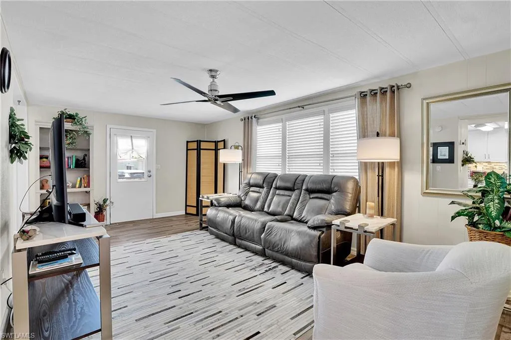 16007 Tangelo Way is a Lovely Turnkey property that boasts numerous upgrades and improvements. The home features new 3/4 inch plywood sub floors and new Luxury Vinyl flooring throughout as well as new ceiling fans. The kitchen has been completely remodeled with white Shaker cabinets, granite counter tops, new plumbing, new electrical wiring and appliances. Look at the Tile Back splash! The bathrooms have new vanities, sinks, and toilets. The new windows have new treatments and blinds, and the home comes fully furnished with some furniture from Baer’s Furniture. The exterior of the home has also been updated with all new vinyl siding, new metal roof, new insulated carport with recessed lighting and new windows. A washer and dryer are located in the shed, and the driveway has a decorative coating. The screen room is nice for enjoying the fresh air and features waterproof curtains and the property includes irrigation for shrubbery. This home has been extensively upgraded from 2018 to 2023, making it a modern and comfortable living space for its new owners. Included in the sale is a Park Certificate Valued at $11,500 which lowers the maintenance fee to $214 monthly. Tangelo Way is a low traffic side street and is in a central location close to all the community has to offer and a short distance to Flamingo Hall and pool. You will enjoy the East facing front porch with your morning coffee and the warmth of the morning sun, what a great place to socialize with neighbors and friends. Tamiami Village is a 55 and Older Pet Friendly Very Active Community and has Many Amenities Including 3 Heated Swimming Pools, Spa, Shuffleboard courts, Horseshoes, Billiard Rooms, 2 Clubhouses, Fitness Center and Library. The Community is Close to Dining, Shopping, Golf and Beaches!