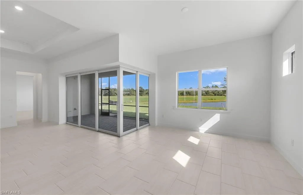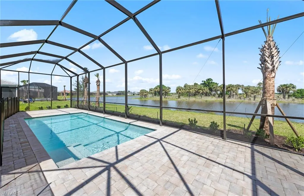 Move to Del Webb Oak Creek! Brand new Stellar home with POOL INCLUDED! Features include 3 bedrooms, 3 baths, Den, and 2 car garage + golf cart garage. Stainless steel built-in appliances, 42″ white wood cabinets except for the kitchen island is burlap color cabinets, custom backsplash, and quartz countertops throughout. Impact glass! Owner’s bath upgraded with enlarged walk-in shower, upgraded walk-in shower at secondary bath, and third bath with tub/shower combo. Tray ceiling at gathering room. 4′ garage extension & epoxy finish flooring, Tile flooring throughout except for carpet in the secondary bedroom, Enjoy indoor-outdoor living with the zero-corner sliding glass door to the screened-in covered lanai with pool & water view. This Stellar home is complete and the screened-in pool is underway! Oak Creek is Del Webb’s newest 55+ community, situated in North Fort Myers. Homeowners will benefit from it being a natural gas, gated community with vacation-inspired amenities such as a resort style pool and spa, clubs and activities, a restaurant and covered Tiki, and a fulltime lifestyle director. Just beyond the gates homeowners can find shopping and dining, explore Fort Myers River District, relax on the Gulf Coast beaches, and experience new recreational activities while still being only minutes from everyday conveniences.