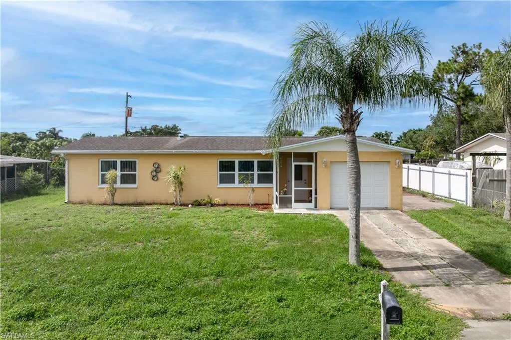 Discover this well-maintained 3-bedroom, 2-bathroom home nestled in the heart of Lehigh Acres. Featuring durable tile flooring throughout, this residence offers both style and easy upkeep. The kitchen is equipped with classic white appliances, a wall oven, and a stylish backsplash, providing a clean and timeless aesthetic. The primary suite includes a spacious walk-in closet for added convenience. Each room is thoughtfully designed to maximize space and comfort, making it ideal for both relaxing and entertaining. This home is connected to central water and sewer services, ensuring modern living with ease. Located near schools, shopping centers, dining options, and Florida’s beautiful beaches, it blends leisure with practicality. Don’t miss the chance to own this charming home that perfectly balances comfort, convenience, and Florida living. Schedule your private tour today and envision the possibilities that await in this delightful Lehigh Acres residence.