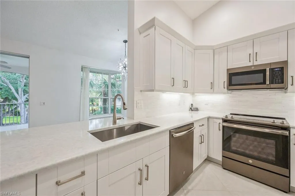 Experience refined Florida living in this beautifully remodeled second-floor coach home, located within the exclusive community of Silver Oaks at the prestigious Vineyards Country Club in Naples. Spanning 1,695 square feet, this 3-bedroom, 2-bathroom residence seamlessly blends comfort, elegance, and modern upgrades.