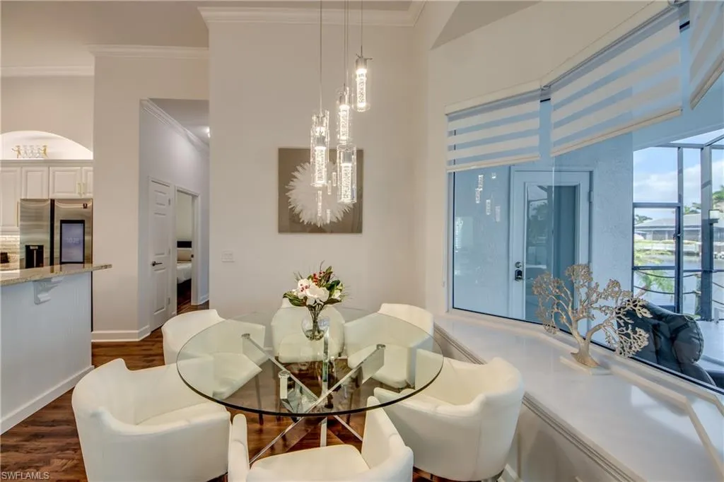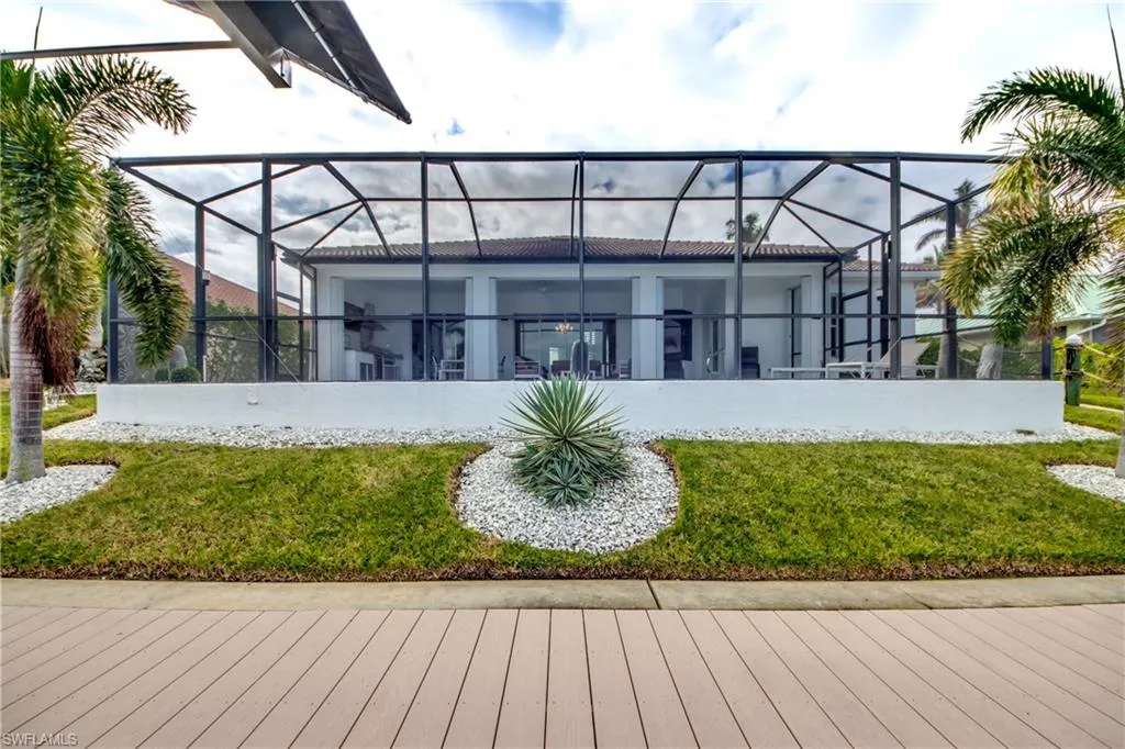 Welcome to your dream home—an exquisite Gulf access property located directly across from the new and popular Sands Park in Southwest Cape Coral. This stunning property, recently remodeled and updated, boasts 3 spacious bedrooms, 2 luxurious bathrooms, plus a DEN, all thoughtfully designed within over 2,200 square feet of elegant living space. The open-concept layout enhances the flow of the home, perfect for both entertaining and everyday living. Every corner reflects meticulous attention to detail, featuring a grand foyer that leads into a bright, expansive living area complemented by formal dining options and a cozy breakfast nook. The gourmet kitchen is a true chef’s delight, equipped with upgraded appliances, level 5 granite countertops, chic kitchen hardware, and a tasteful matching backsplash that highlights the modern design. The master bedroom offers ample space that can accommodate a vanity or a cozy sitting area, perfect for unwinding after a long day. The bathroom en suite has been upgraded to reflect modern elegance, featuring double sinks and exquisite quartz countertops. The frameless glass shower is a standout, showcasing beautiful tile work and is equipped with linear drains for a seamless look. Adding to the convenience and luxury are the smart water closets. Throughout the main living area and bedrooms, engineered wood floors create a warm and inviting atmosphere, seamlessly blending style and durability. Stepping outside, the expansive outdoor area beckons with a huge lanai and a heated pool, perfect for entertaining friends and family. An outdoor kitchen with a built-in grill, wine cooler, and bar sink enhances the outdoor experience, making it an ideal space for gatherings. For boating enthusiasts, this home comes with a remarkable boat dock (PVC) featuring a sitting area with a canopy and a 10,000 lb lift, allowing for easy access to the Gulf. The property was professionally furnished and decorated, providing a turn-key opportunity for buyers. Don’t forget to check out the virtual tour to experience the full splendor of this exquisite home!