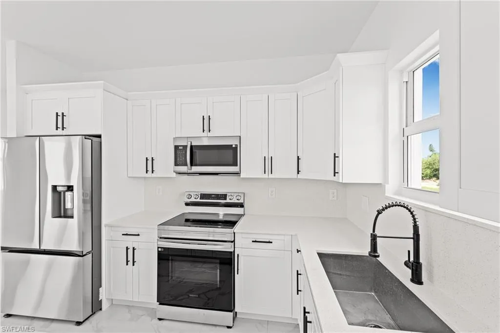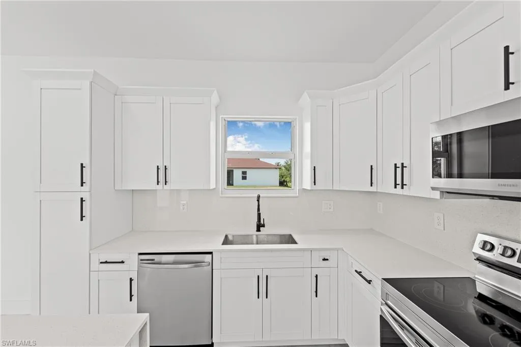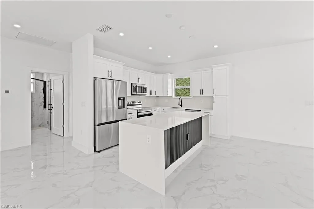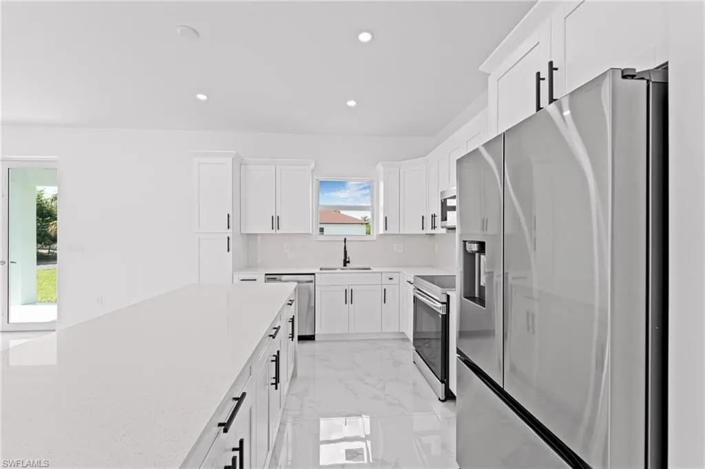 Welcome to your New home in the desirable South West area of Lehigh Acres! This beautifully designed residence offers 3 Bedrooms Plus Den, 2 full bathrooms, and a 2-car garage. This is a Home with an open-concept layout featuring elegant porcelain tile flooring throughout and beautifully crafted finishes. The modern kitchen is a true centerpiece, complete with a beautiful island, wood cabinetry, quartz countertops, and a full package of stainless steel appliances. Enjoy outdoor living with both an open front porch and lanai, plus a generously sized backyard with endless potential for a swimming pool, gardening, play, or future additions. Conveniently located near major roads, shopping, and schools this is your opportunity to own a well-appointed, move-in-ready home in one of Florida’s fastest-growing areas. Schedule your private showing today!!!