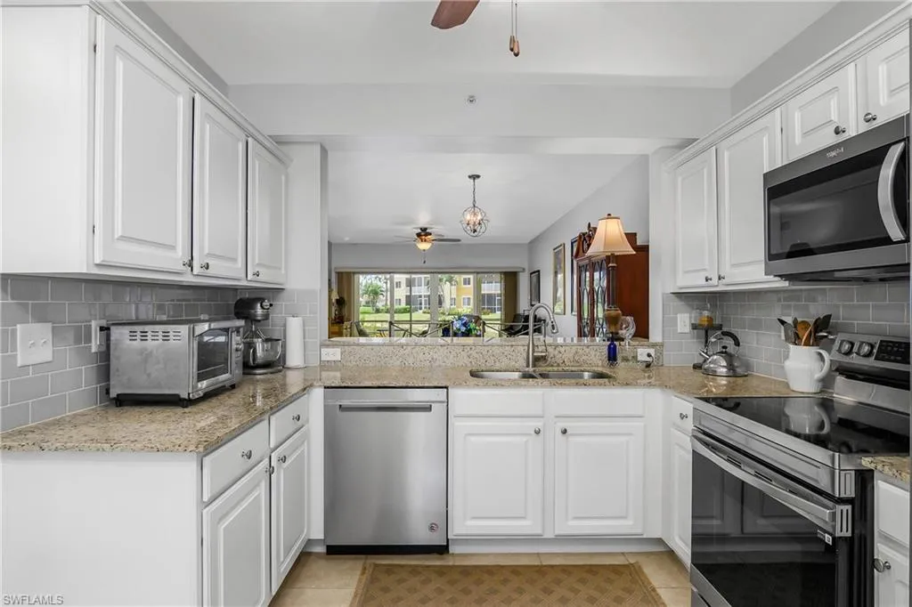 Charming, Upgraded 2 Bedroom 2 Bath FIRST-FLOOR Condo with Scenic LAKE-VIEWS in a PET-FRIENDLY Community (Two Pets with no weight restrictions).Welcome to this Beautifully Upgraded and Meticulously Maintained Condo, nestled in one of the area’s most Desirable Locations. The Upgrades in the Kitchen include Granite Countertops, Smudge-Proof Stainless Steel Appliances including a NEW SAMSUNG Range/Convection Oven with Air-Fryer, Bread Proof, Steam Clean, Self-Clean and Smart Control (purchased March 2025). Imagine whipping up fresh homemade or Perfectly crispy air-fried vegetables or chicken tenders without needing additional countertop gadgets. Fresh Paint, Upgraded Vanities and fixtures in the Kitchen as well as Both Bathrooms, Hurricane Impact Glass on All windows and Sliders, New smoke detectors. For even more “Peace of Mind” a NEW RHEEM A/C System installed March 2025 and Includes a THREE YEAR Preventative Maintenance Plan! The Primary Suite has Attractive Dual Vanities and a Walk-In Closet. One of the Most Appealing features of this property is its location within a Well-Maintained, Pet-Friendly Community. Here, four legged family members are just as Welcomed as their human companions. Walking path provides ample opportunities to meet friendly neighbors and fellow pet owners. Of course, one of the finest features of this Condo is the Lovely Lake-Views, visible from both the living space and Private Lanai. In summary, this pleasing condo represents the Best of Comfort, Convenience and Style, with its Abundance of Upgrades and thoughtful modern touches throughout. This home is move-in ready and perfectly suited to a wide range of Lifestyles. Liberal Leasing Policy, 12 Rentals per year. Easy to Show. Please Come Take a Look!