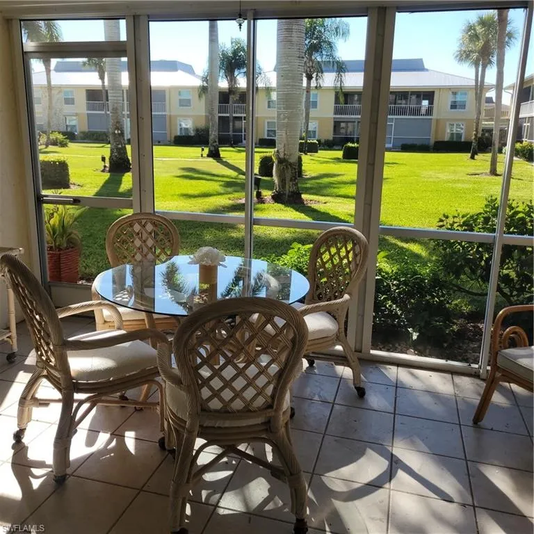 Priced to sell! This light and bright end unit is freshly painted throughout, with brand new LVP floors in all living areas. Bathrooms are both newly updated with modern vanities, mirrors, lighting, and new tile floors. This stylish condo is a much sought after first floor end unit, with covered assigned parking and guest parking steps from the front door. The lanai gives direct access to the pool, grill, and cheeky bar and comes with a power shutter for added shade/ storm/rain protection. Windows are hurricane rated and there is a brand new roof! Enjoy this vibrant community with regular “happy hours” for those who like to socialize, and plenty of places to walk or ride bikes. It is also just minutes to pristene Naples beaches, 5th Ave S, shopping, restaurants, groceries, and so much more. Affordable HOA fees with an extensive list of inclusions, and located in Flood Zone X500. This is a mostly 55+ community, no pets. Professional photos to come after recent updates!