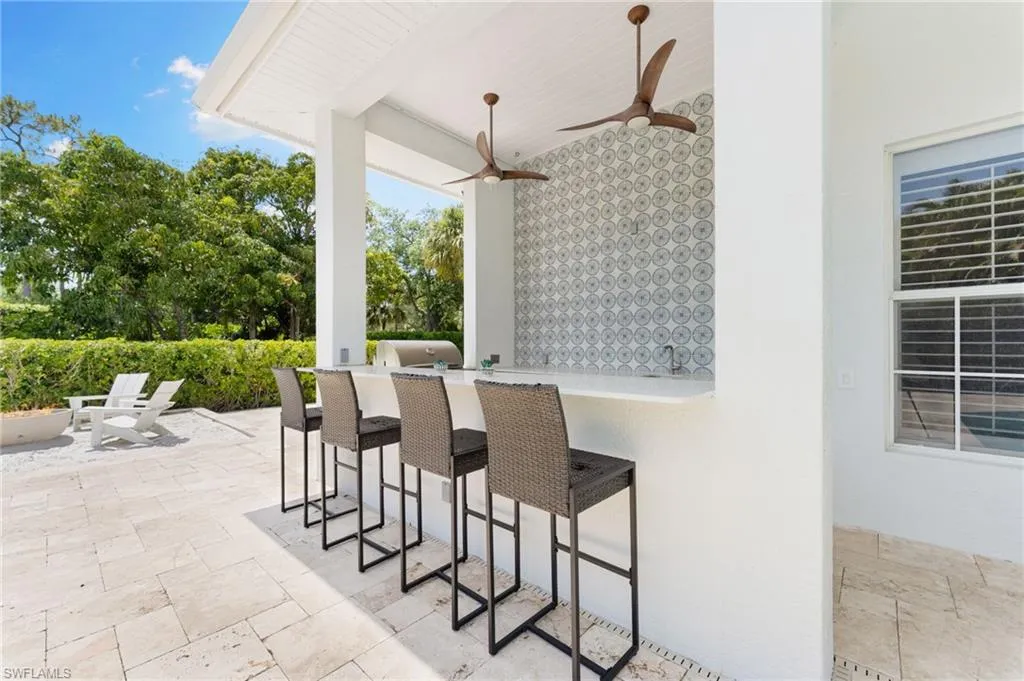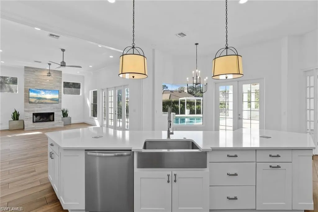 This freshly renovated four-bedroom, three-and-a-half-bath residence offers the perfect balance of comfort, style, and functionality—truly move-in ready. Set on a rare 0.53-acre southern-exposure lot in the sought-after Hawksridge community, the property also sits in the X-Zone, meaning no flood insurance is required. The expansive floor plan showcases soaring ceilings, a formal living and dining room, and a warm family room anchored by a fireplace. The open kitchen is a showstopper, featuring a massive island, quartz countertops, high-end appliances, herringbone backsplash, walk-in pantry, and a casual dining nook. The Primary Suite is a private retreat with a custom walk-in closet and a luxurious all-new bath, complete with designer tile, dual vanities, soaking tub, and a large walk-in shower. Three additional bedrooms are generously sized, while the fully renovated guest baths feature sleek tile and modern fixtures. French doors open to a resort-style outdoor living space designed for entertaining and relaxation. Highlights include a heated pool and spa, expansive patio, new Thralis cabanas, a covered lanai with plank ceilings, and a coastal-inspired firepit with a sand surround. The outdoor bar area boasts quartz countertops, a new gas grill, and a decorative tiled feature wall. A full guest bath with outdoor access and an exterior storage room complete the setting. Recent upgrades include: Modern tile roof (2022); New AC units ;Propane tank;Bahama shutters;Enhanced landscaping;Fresh interior paint;Updated lighting throughout. The fully fenced yard provides ample room to expand—ideal for future guest quarters, a detached garage, or your own custom vision.