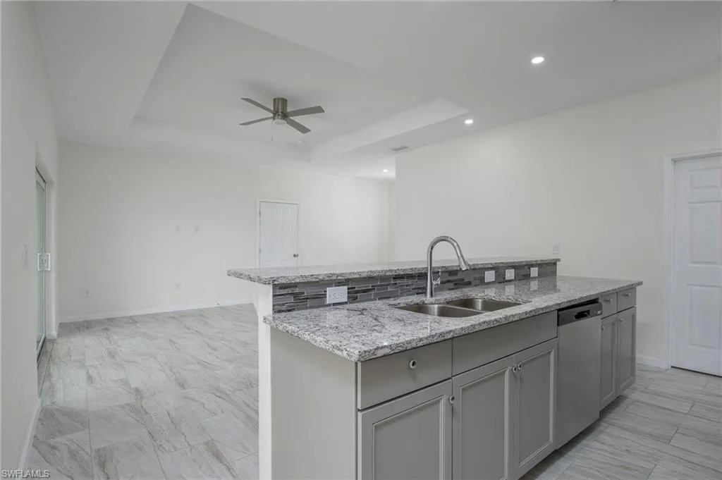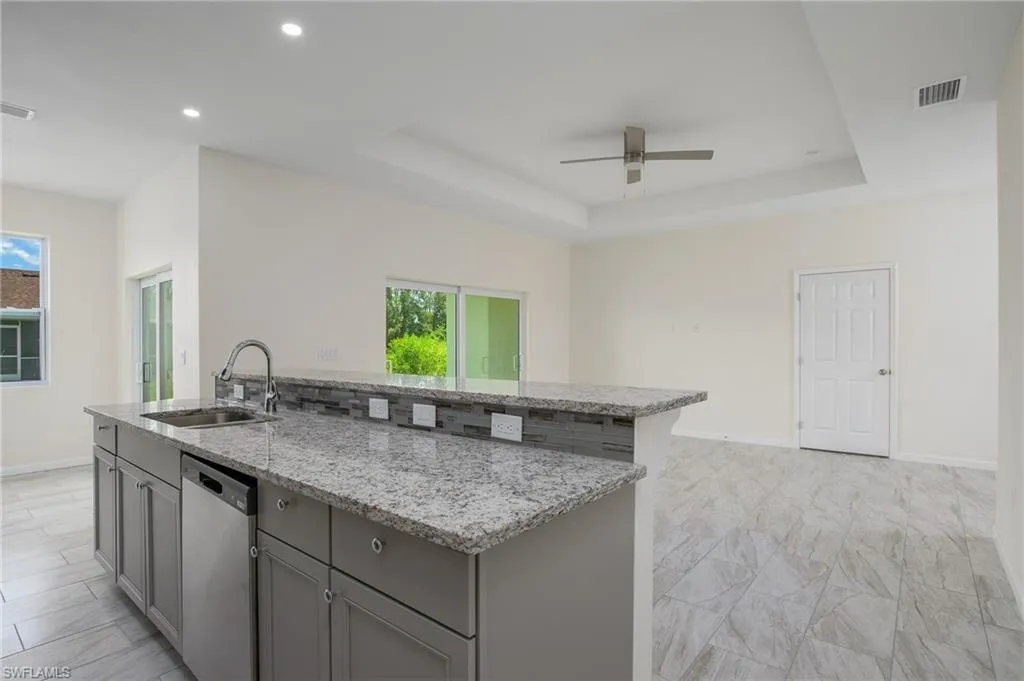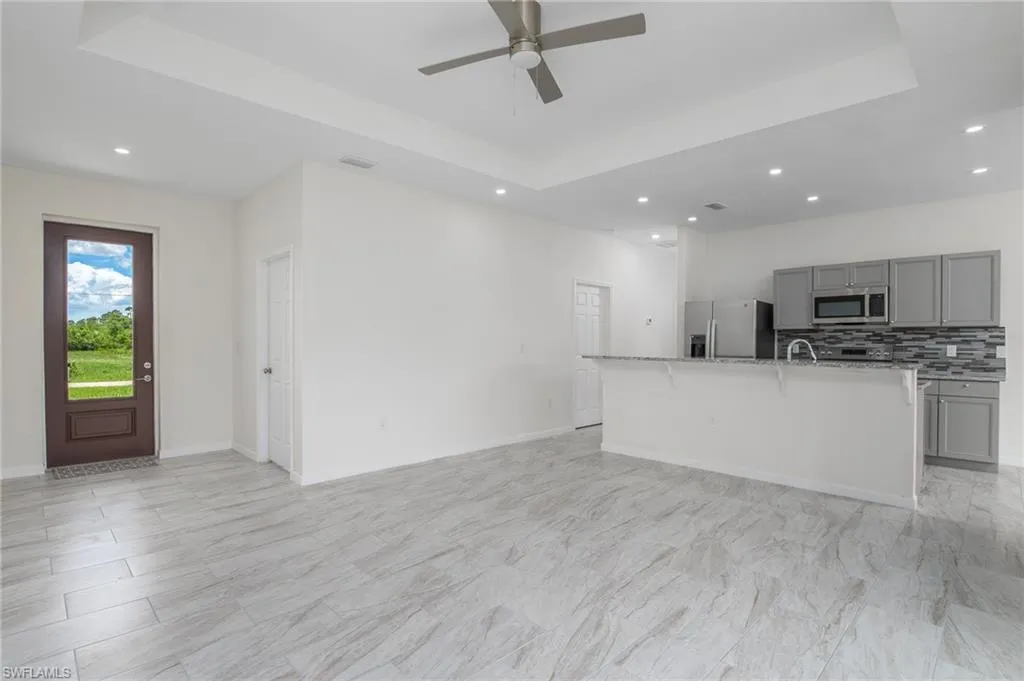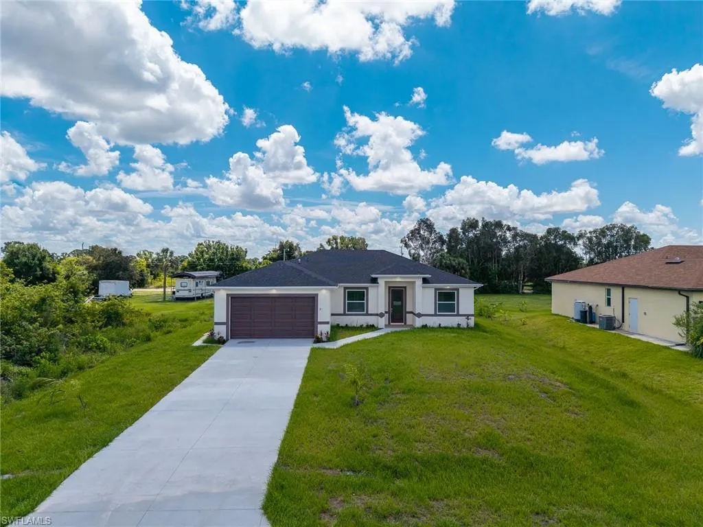 Seller is offering closing cost assistance. Brand new construction in the heart of Lehigh Acres, FL! This 4-bedroom, 2-bath, 2 car garage with outdoor recess lighting home, features impact resistant doors and windows, an open concept floor plan with high ceilings and abundant natural light. The modern kitchen includes stainless steel appliances, sleek cabinetry, and a large center island perfect for entertaining or casual dining.