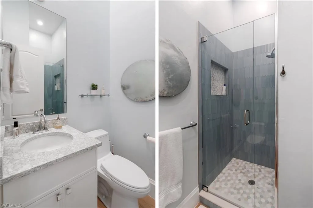 INCREDIBLE VALUE! MOVE IN READY BEAUTIFULLY RENOVATED AND FURNISHED MEDITERRA HOME! This recently fully renovated and furnished second-floor coach home in Mediterra showcases a fresh modern coastal design with soothing tones of blue, white, and tan. The light-filled interior features an open floor plan, elevated finishes, and stylish furnishings that create a relaxed yet sophisticated atmosphere. Enjoy long lake views from the spacious screened lanai, and the added convenience of a private driveway—rarely offered in coach homes. Located in the heart of Mediterra, one of Naples’ most prestigious gated communities, residents enjoy access to the exclusive Mediterra Golf & Beach Club, featuring two Tom Fazio championship golf courses, a private newly renovated beach club along the Gulf of Mexico, state-of-the-art fitness, tennis, pickle-ball, and exceptional dining. New 38 million dollar sports club facility just approved!