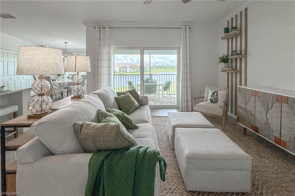 This open-concept layout is perfect for entertaining, with the kitchen, dining, and living areas flowing seamlessly toward the rear of the home. The back of the condo opens to your private screened lanai with beautiful golf course views, creating the perfect space to relax or entertain.
