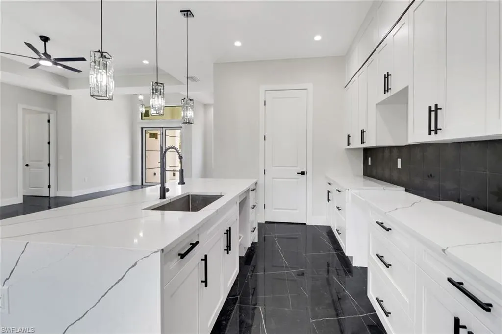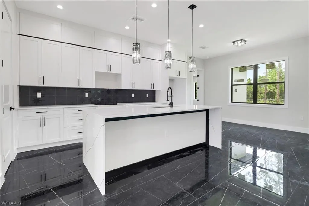 Discover this beautiful brand-new home situated on over 2.7 acres of land, offering more than 2,200 sq. ft. of luxurious living space.This home features 3 generously sized bedrooms and 3 full baths, plus a versatile flex space that can serve as a recreation room, home office,or media room, complete with a closet, private bath, and wet bar. Inside, you’ll find stylish tile flooring throughout, impact-resistant windows and doors,a waterfall kitchen island, and an upgraded appliance package. The lanai, equipped with a wet bar, is perfect for enjoying your morning coffee or evening cocktail while overlooking the landscaped yard. Entertaining is effortless with the chef’s kitchen that opens to a large great room featuring sliding doors to the lanai. Guests can relax at the kitchen island and chat while meals are prepared. The café dining area is ideal for casual get-togethers, while the formal dining room is perfect for holidays and special occasions. The primary bedroom suite offers a spacious walk-in closet, dual sinks, a walk-in shower, and a private water closet. Additional upgrades include decorative wood trim around the windows,ceiling fans, lighting fixtures, and a whole-house reverse osmosis system. The 2-car garage provides ample storage space. This home exemplifies comfort, style, and quality living.