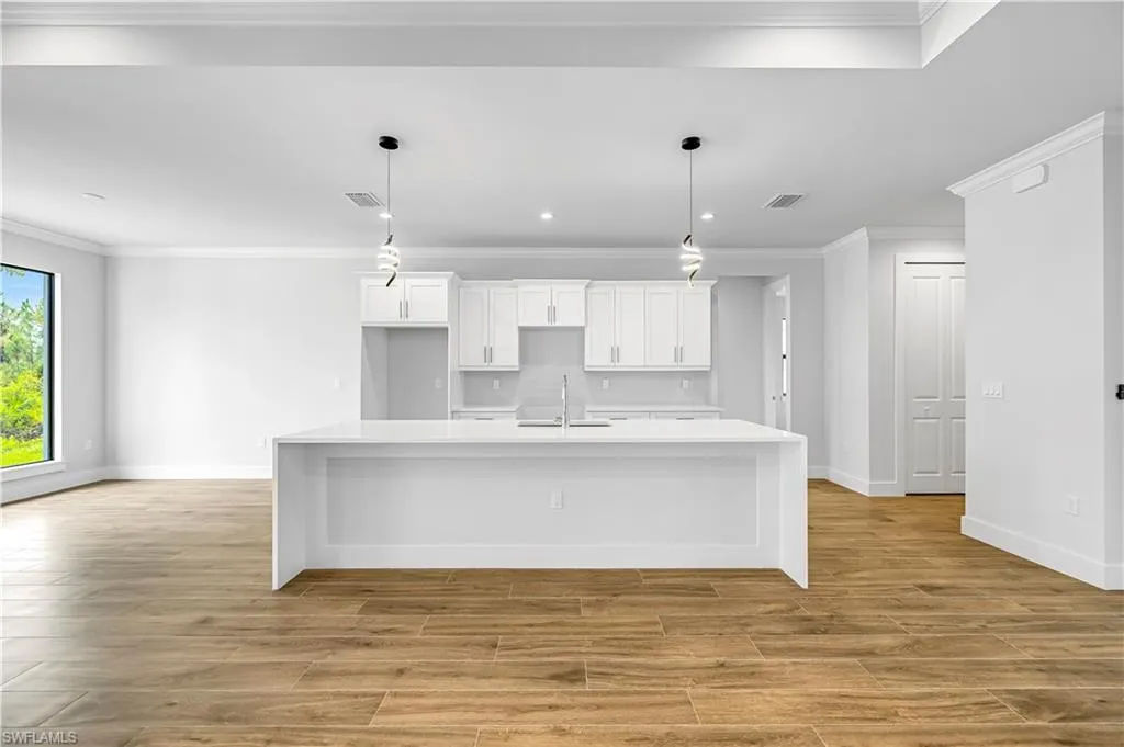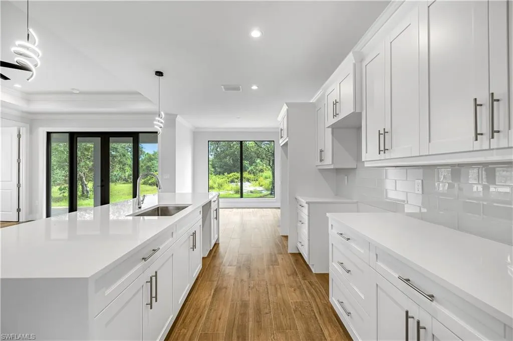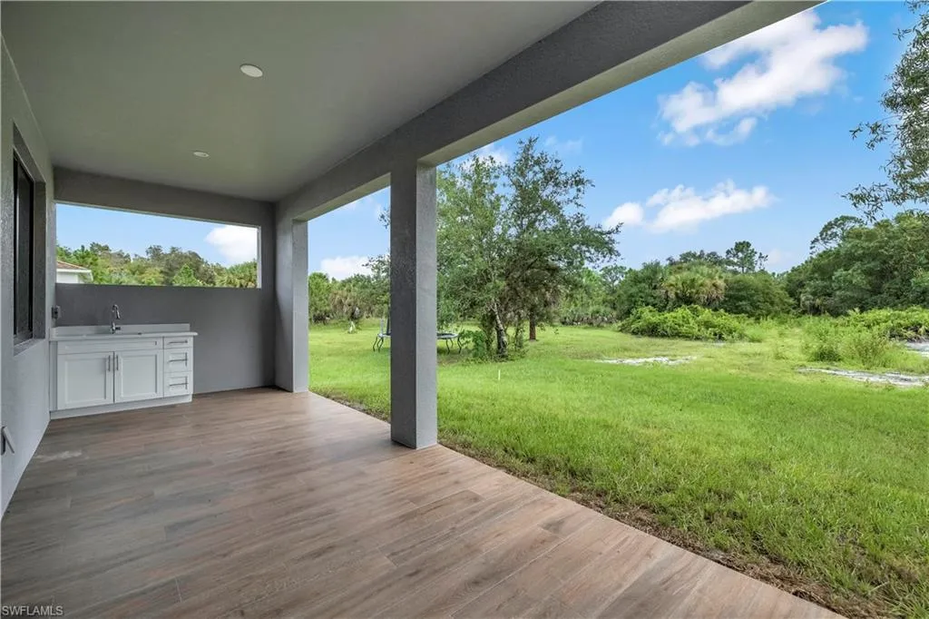 *PRICED TO SELL FAST* Home built in the area of Golden Gate Estates on a 1.14ac 100% upland lot, features 3 bedrooms + Den, 2 bath, & 2 car garage! Living area of 1,656 sq.ft and a grand total of 2,398 sq.ft. Upgrades include porcelain plank tile throughout, crown molding, quartz countertops, stainless steel appliances, and solid wood cabinets! The kitchen has 2 pantries. The living room and master suite boast tray ceilings. Master wing features an oversized bedroom, 1 spacious closet, double vanity, and glass door enclosed shower. The outside of this home will not disappoint either with a beautiful landscape, auto sprinkler system, and a summer kitchen in the large lanai. Impact resistant windows/doors! Your brand new home will be ready in July 2025! Pictures are from another same model home.
