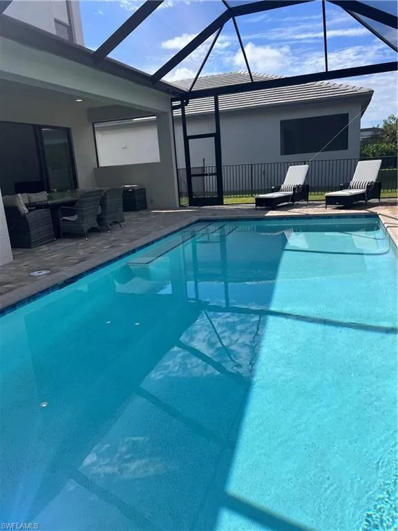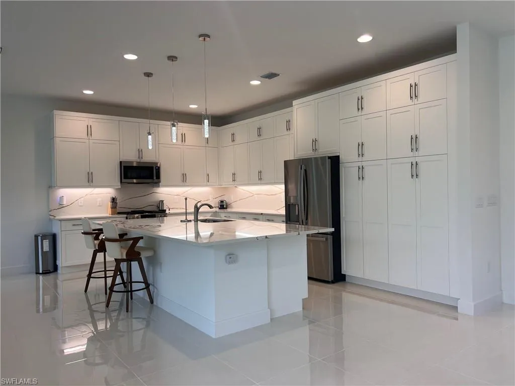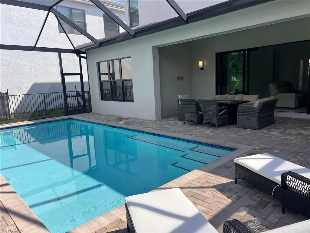 Step inside the sought after WESTERN Exposure Denali model in the Brand New Guarded and Gated amenity rich community of RIVERCREEK. Welcome home to this Brand NEW, never lived in, highly upgraded with impact resistant windows, Light, Bright, NEW, hardwood flooring, 4 very spacious bedrooms 4 spa-like bathrooms, Great room + loft & 2 car garage– Saltwater Heated POOL. Stunning new home offered partially furnished-optional! Design includes Large Porcelain tiles, upgraded bathrooms and inviting chefs kitchen with Quartz countertops, Spa-like master bath with dual sinks and jacuzzi tub- Brand New Large Heated Saltwater Pool with caged Lanai, PLUS Fenced in yard with plenty of room for your kids to play and pets to roam- located on a perfect quiet private preserve lot! Why wait to build when you can have it all ready for you just in time to unpack your suitcase and enjoy a swim for summer & have your family ready for school without the stress!! Centrally located to everything you may ever need! Great Schools, Hertz Arena events, entertainments and ice skating, Miromar Outlets, Publix, Coconut Point Mall, Paradise Beaches, RSW Airports, FGCU campus- Downtown Bonita Springs nightlife are ALL 5-15 minutes away. RiverCreek offers a convenient location with plenty of options – you’ll have everything you need close by!! With the stunning 4-ACRES OF AMENITIES RIGHT OUTSIDE YOUR DOOR -12,000 total sq. ft. Clubhouse filled with impressive amenities such as the indoor sports court, fitness studio, sports lounge, card salon and more! Take a dip in the resort-style pool, play a game of pool, or gather with friends for an evening around the fire pit – RiverCreek has everything you need to make your lifestyle complete! Kids will love the party pavilion, shaded playground and Splash Park while outdoor sports fans can soak up the sun with four tennis courts and six pickleball courts, all complete with shade pavilions and lights for nighttime play too. RiverCreek offers the best in Florida resort-style living. Call today for your private tour and make this stunning dream home Yours! Professional photos coming soon.