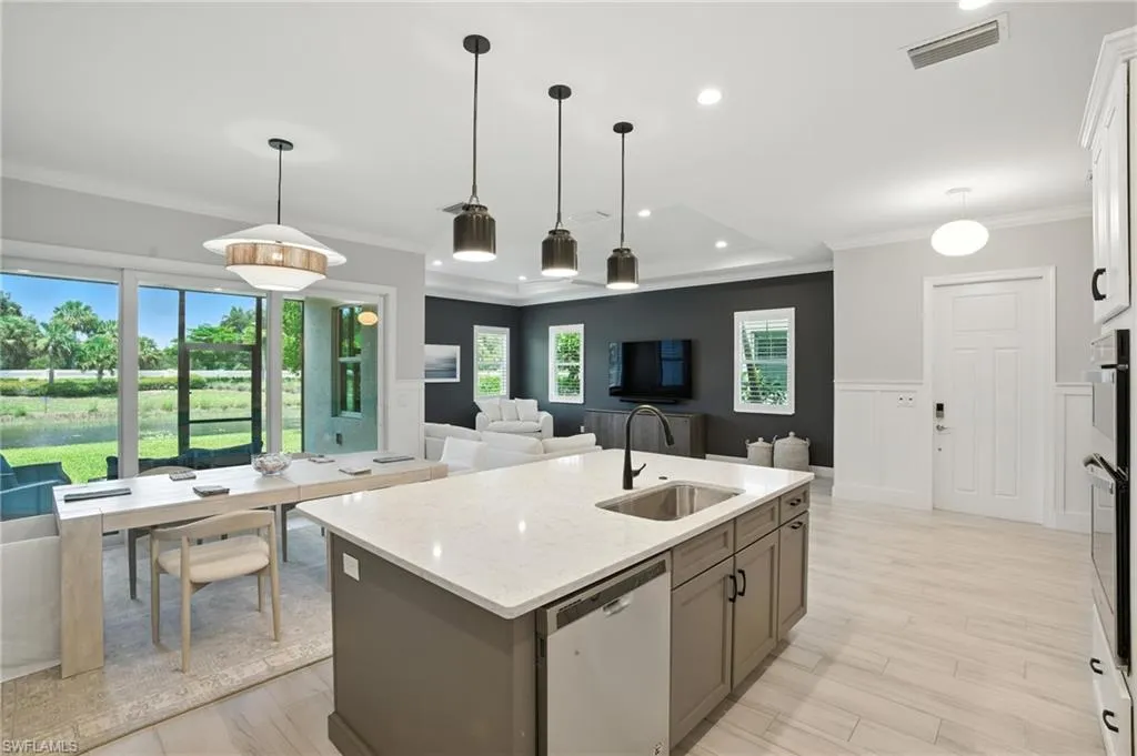Other highlights include a Tesla charger in the 2-car garage, Hunter Douglas plantation shutters, upgraded washer and dryer, and smart exterior and landscape lighting systems on timers. Located in a vibrant gated community with resort-style amenities—clubhouse, pool, fitness center, tennis, and more—this home offers the ideal blend of style, comfort, and convenience. Just pack a bag—this home is fully equipped and move-in ready. Whether you’re searching for a seasonal escape or a full-time residence, this turnkey lakeview villa checks every box.