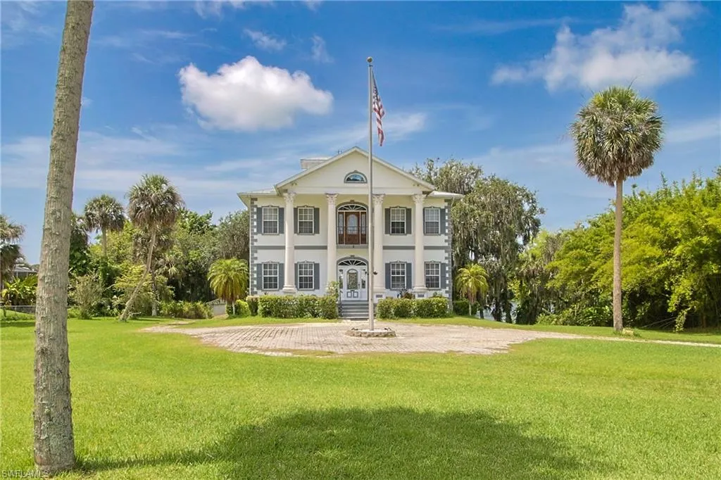Discover timeless Southern grandeur on over an acre along the banks of the Caloosahatchee River in this stately Greek Revival masterpiece. Framed by soaring columns and graceful arches, this one-of-a-kind estate offers serene waterfront living, where mature oaks sway and breathtaking river views greet you at every turn.