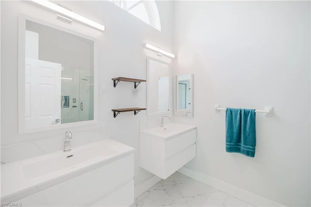 The primary suite is a true retreat with a large walk-in closet and a fully renovated bathroom featuring a zero-gravity vanity, ½-inch thick glass shower enclosure, and triple-function shower diverter. The guest bathroom has been beautifully updated as well.