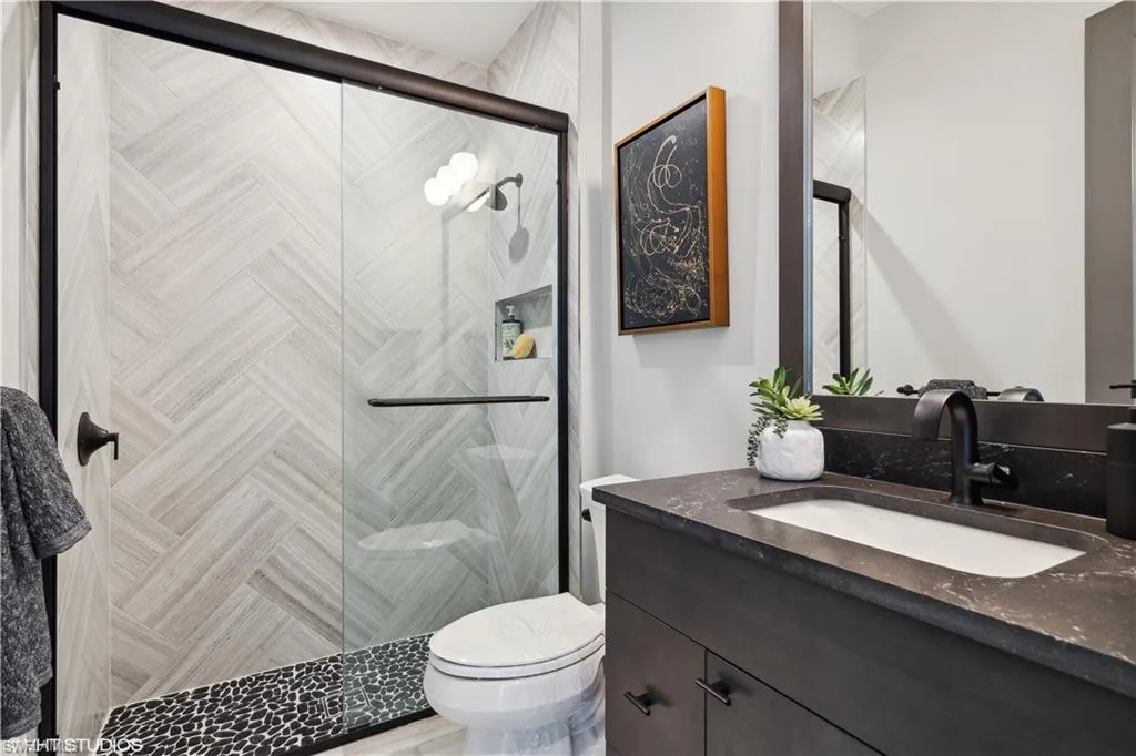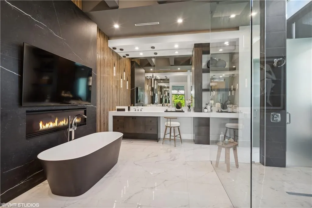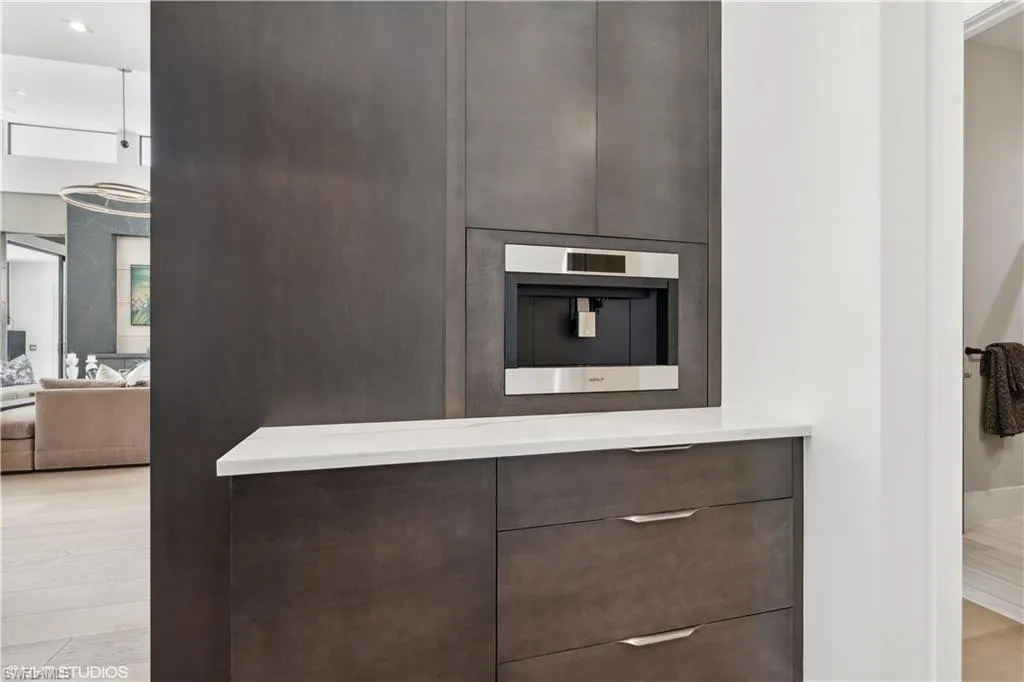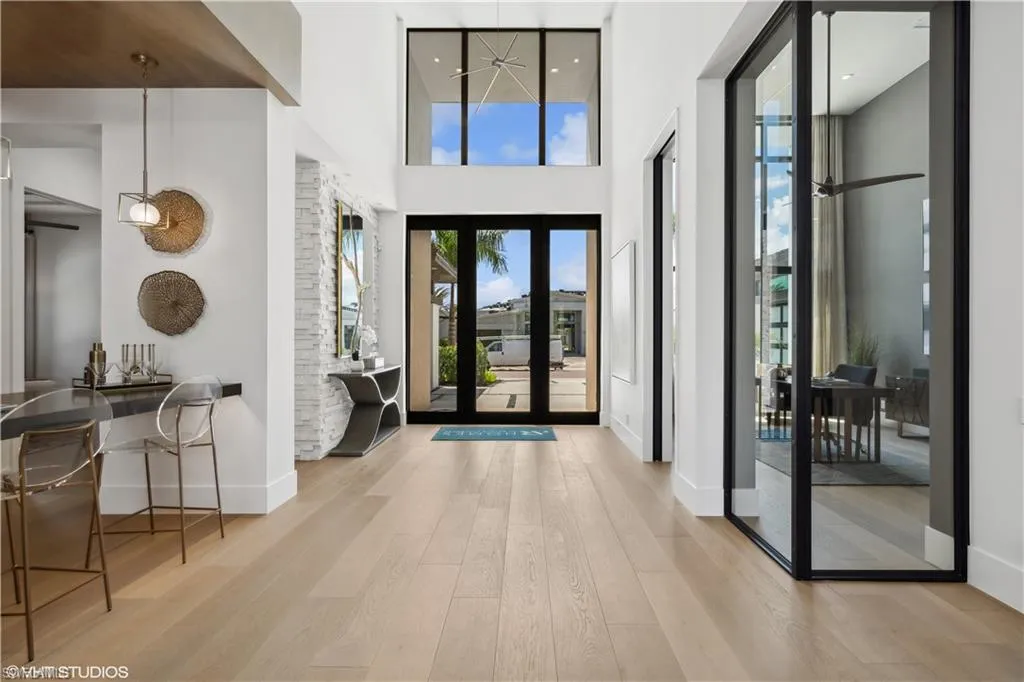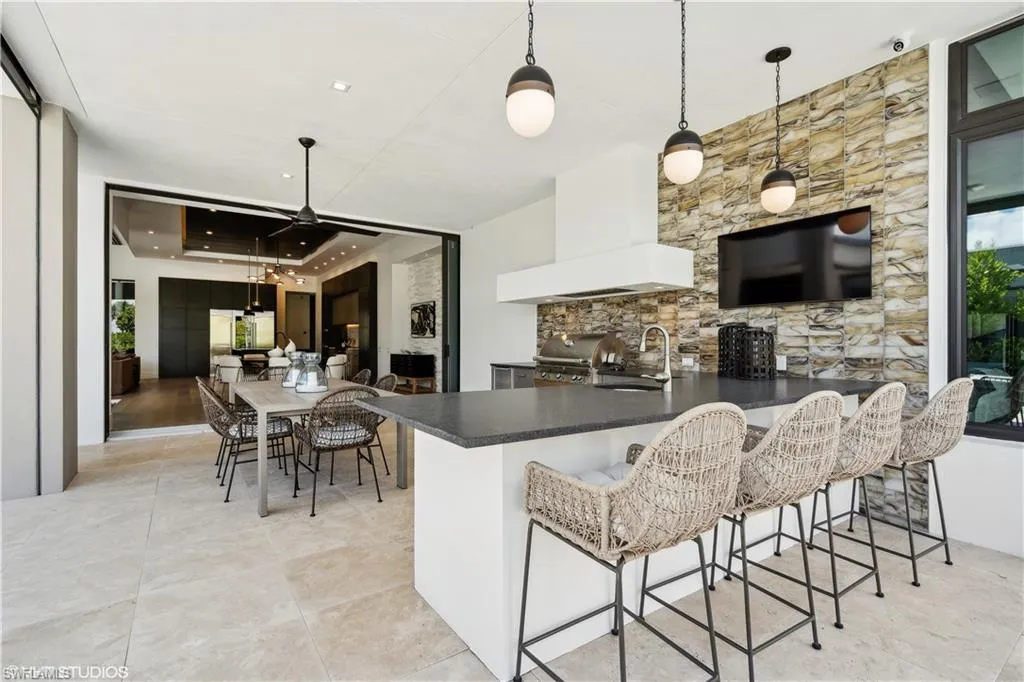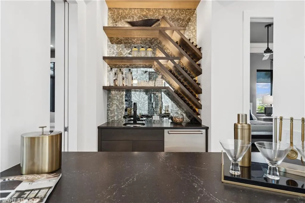 This beauty is ready to move in! Come take a peek! Tour the #1 Community in the USA – Miromar Lakes Beach & Gulf club. San Lorenzo one of Miromar’s highly distinguished communities, is now offering The Tesoro built by AR Homes Fort Myers. Is fully furnished!! Get ready to move into these 4410 square feet of breathtaking living space. A 19-foot Portico greets your guests with Panama style shutters adorn the exterior. Inside pocketing walls of glass offer spectacular water views overlooking the 47×14 infinity edge swimming pool. Entertaining is clearly a priority and seamless with the presence of deck jets, sun shelf, wet bar, outdoor kitchen, fireplace, pool bath, covered cabana, and lanai. Tesoro offers (3) bedrooms, 4.5 bathrooms, great room, den, bonus room, a magnificent VIP Suite, and an abundance of parking with a (3) car garage. Boat doc included. Come take a tour and see it ALL in one luxurious location.