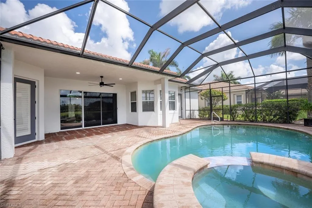 Welcome to your next chapter in the EXCLUSIVE gated community of Shadow Wood Preserve—where golf course living meets modern convenience and timeless style. This beautifully renovated 3-bedroom+ den, 3.5-bathroom home on a private quiet street features a new tile roof and offers the perfect blend of Florida lifestyle and smart-home features in a tranquil setting. You will be wowed when you enter the home’s large great room with vaulted ceilings and gorgeous views of a pond and golf course. Once inside, you will discover all new luxury vinyl plank flooring, a totally re-designed kitchen with brand-new high-end appliances, Quartz counters, custom backsplash and tile flooring. How about a CUSTOM WINE WALL! A feature you do not find in other homes, this backlit wine cabinet holds over 50 bottles of wine to display. Enjoy seamless indoor-outdoor living with a picture screen lanai facing SouthEast, large pool & hot tub, and covered seating area—perfect for morning coffee, sunset wine tastings, or hosting guests after a day on the links. Smart features include a Nest thermostat, Nest doorbell, built in speakers with bluetooth connectivity and integrated controls to keep your home secure, efficient, and connected no matter where you are. Large master suite features a custom glass shower, soaking tub, and a big walk-in closet! Plantation shutters on all the windows, epoxy garage coating, and all new bathrooms are just some of the additional features this home offers you. Shadow Wood Preserve is one of SW Florida’s premier golfing & lifestyle communities. Even for non-golfers, you can launch a kayak, enjoy covered pickleball courts, a full social calendar or even access the private beach! Upon joining as social, lifestyle or golf, you will have access to the amenities and restaurant at Shadow Wood at the Brooks by Coconut Point. The home has not been lived in since the remodel and is ready for a new owner.