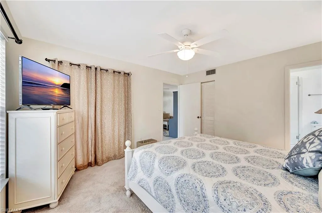 Available ANNUALLY, this 2 bedroom + den, first floor condo is pet-friendly (with approval.) It is being offered FURNISHED/UNFURNISHED or PARTIALLY FURNISHED – you choose. Located in South Naples just 3 miles from the beach and shops in Old Naples, you’ll enjoy a location that’s tucked away but close to so much! Lightly furnished, the living room/dining room is tiled and offers a large Smart TV, a pass-thru kitchen, and sliding glass doors to the screened lanai with a garden view with tennis courts in the distance. The Primary Bedroom suite offers a queen bed, a Smart TV, a spacious walk-in closet with built-ins, and a remodeled bathroom with a walk-in shower. The second bedroom is furnished with another queen bed and has a nearby bathroom with a shower/tub combination. The den is open and has a loveseat/sleeper sofa as well as a desk. The full-size washer and dryer are in a laundry closet on the screened lanai. Courtyard Village is part of the King’s Lake community with great walking trails, bike paths, a community pool and tennis court. You’ll be walking distance to King’s Lake Square Shopping Center home to Publix grocery store, Starbucks, Tacos and Tequila, and various other shops and restaurants. Per the Homeowner’s Association: not more than 2 unrelated persons may reside in the unit; there is 1 assigned parking space but 2 vehicles are allowed; no trucks, motorcycles, motor homes, or boats. Applicants should have excellent credit and 3 times the monthly rent in monthly income. First month’s rent due at lease signing; Last month’s rent and SD due prior to occupancy.