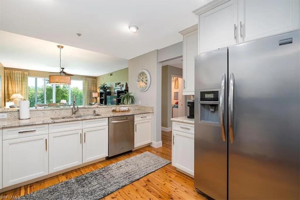 WESTERN EXPOSURE overlooking the 17th fairway—ideal for soaking in the breathtaking Naples sunsets from your very own screened-in Lanai & spectacular golf course views from your own piece of paradise! This beautifully designed, furnished & turnkey w/exclusions 2-bedroom, 2-bathroom condo located on the 2nd Floor of Compass Point South at Windstar on Naples Bay! The community of Windstar offers the luxury Florida lifestyle with a very vibrant social hub. It’s the only unit in Compass Point with EXTERIOR Sliding HURRICANE Proof GLASS DOORS on the lanai that allows you to enjoy indoor under AC space or outdoor space any time of the year! Just steps away from the elevator & 2 community pools. Brand NEW AC, this open-concept floor plan offers an abundance of naurual light featuring a bright & beautifully updated kitchen w/granite counter tops, white cabinetry, stainless applicances, eat-in kitchen nook, breakfast bar with stools, pantry closet & plenty of cabinet space for the gourmet cook in your life! A generous size living & dining room area that seats 4. Gorgeous bamboo wood flooring in main living areas & both bedrooms. The Master Suite suite (KING) offers a serene retreat with expansive golf course & lake views, an en-suite bathroom with double vanities, a walk-in shower, a soaking tub, and a large walk-in closet. The guest bedroom with (FULL) & 2nd Bath beautifully updated with tub shower combo w/white subway tiles. Laundry room in residence. 1 assigned carport space & a storage closet where you can store our golf clubs & beach items! Compass Point South features fantastic community amenities, including 2 recently renovated pools with gorgeous views, 4 impeccably maintained buildings, elevator, and lush tropical landscaping. Windstar on Naples Bay Club boasts remarkable optional (private membership) resort amenities as well, including a championship Tom Fazio-designed 18 hole golf course, a newly remodeled clubhouse with spectacular views of Naples Bay and Port Royal, a 73-slip deep-water marina South Point Yacht Club, 6 Har-Tru tennis courts and 3 bocce courts, fintess center, social activites & clubs such as a cycling club, cigar club, fishingclub & wine club, dining at the 1700 Grille, Bayview Dining Room & Sunset Lounge. Windstar’s Keewaydin Island Beach Club is accessible to all residents via a private boat shuttle called the Keeywaydin Queen or exclusive private sunset, fishing & sightseeing cruises aboard the “Second Wind”. Embrace true resort style living at Windstar on Naples Bay! Close to Naples Botanical Garden, Naples Pickleball Center, Bayshore Art District & easy access via bike, golf cart or car to downtown Naples’ 5th Avenue South & 3rd St S renowned worldwide for its fine dining, shopping and white sandy beaches! Come Live the Florida Lifestyle in Windstar where everyday can be your BEST day!