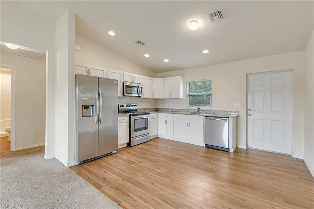 Welcome home to this spacious 3-bedroom, 2-bath residence with a 1-car garage in a quiet LaBelle neighborhood. Featuring an open-concept living area, this home boasts a modern kitchen with stainless steel appliances, plenty of cabinet space, and a cozy dining area perfect for family gatherings.
