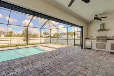 Beautiful move-in-ready single family home 4 bedrooms (or 3 bedroom + den) in Southwest Cape Coral FL. This home is fully equipped with all appliances, saltwater pool, outdoor kitchen, custom window treatments, impact glass windows and doors, and overhead lanai shutter for additional storm protection. Also, 2 car garage with attic storage. Centrally located in Cape Coral with easy access to Burnt Store & Pine Island Roads. Close to City boat ramp, stores, hospitals, libraries, houses of worship, restaurants, parks & recreation, schools, Veterans Out-patient Facility, etc. Maximum number of residents is 4 and no pets. This rental has a possible option to buy to include owner finance @4.75% interest with a 3-5 year balloon at end of term.
