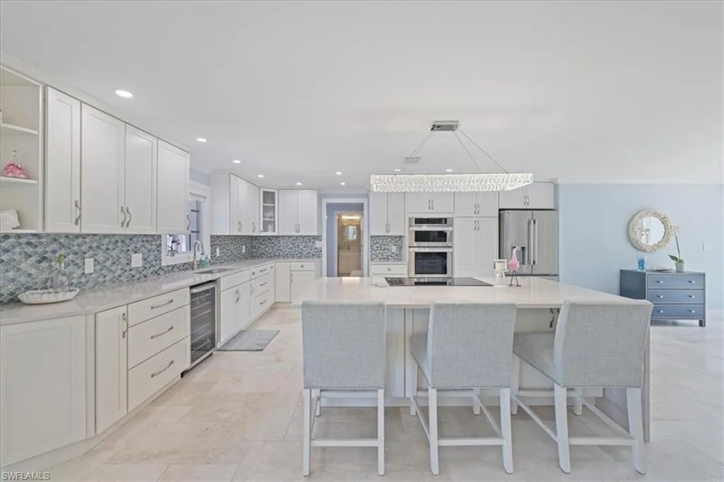 Fully Renovated Waterfront Retreat with Gulf Access – Just Steps to the Beach! Welcome to your dream coastal escape in the highly sought-after Fairview Isles community on the south end of Fort Myers Beach! This fully renovated 3-bedroom, 3-bathroom home offers the ultimate blend of luxury, style, and waterfront living—perfect for boaters, beachgoers, or anyone seeking the Florida lifestyle. Nestled on an oversized lot along a deep, direct Gulf-access canal, this tropical oasis features a private dock with both a boat and jet ski lift, a newly raised seawall, and panoramic canal views—your gateway to Estero Bay and open waters. Inside, the home stuns with an open-concept floorplan, new tile and carpet throughout, and abundant natural light. The chef-inspired kitchen is equipped with new shaker cabinetry, stainless steel appliances, a sprawling quartz island with seating, and modern finishes perfect for entertaining. All bathrooms have been tastefully updated with spa-like finishes, including a pool bath for added convenience. Enjoy seamless indoor-outdoor living with pocketing sliders that open to your resort-style backyard—complete with a refinished heated pool and spillover spa, and covered lanai with ample space for lounging and dining. Additional upgrades include:new impact-rated windows and sliders, new electrical, plumbing, A/C, pool equipment, mini-split AC in the garage, and new 2025 asphalt roof. Located just across from the white sand beaches and minutes to Santini Plaza, restaurants, shops, and Lovers Key State Park, this home offers unmatched access to both land and sea. Whether you’re looking for a forever home, vacation retreat, or high-performing rental investment, this coastal gem checks every box. Your slice of paradise is here—don’t miss this rare opportunity!