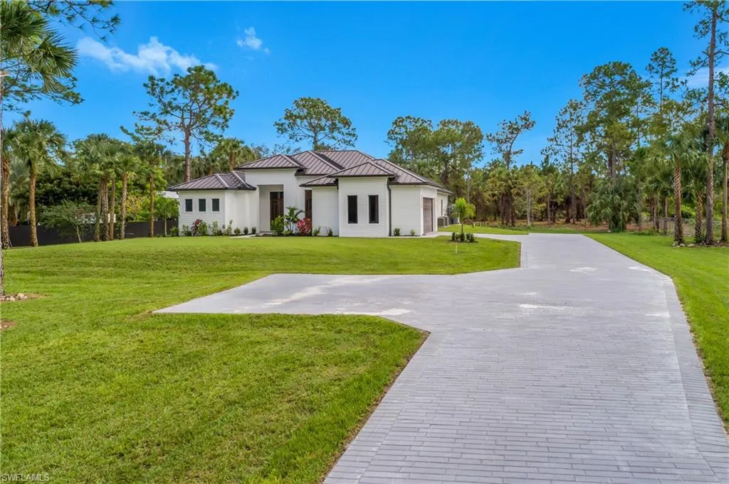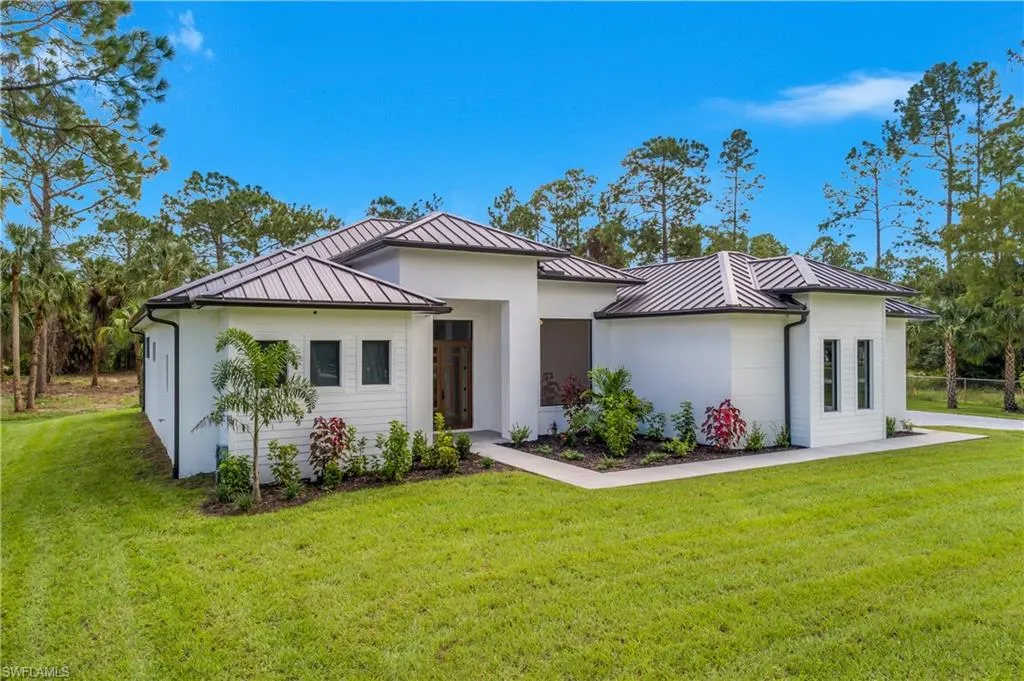 PICTURES ARE OF A SIMILAR HOME. Welcome to your dream home nestled on 2.5 acres of lush property! This stunning house spans 2392 square feet under air, with a grand total of 3383 square feet, 2-car garage. Step inside and discover the luxury within. With 3 bedrooms plus an office and 3 modern bathrooms, each equipped with stylish mirrors and integrated lighting, comfort meets sophistication. Walking closets with built-in cabinets ensure ample storage, complemented by the entire house’s spray foam insulation for energy efficiency. The house features 2 AC units to keep you cool year-round, while impact-resistant windows and doors provide security and peace of mind. Marvel at the brown metal roof, promising durability and longevity. The integrated reverse osmosis system ensures pristine water quality throughout, enhancing daily living. Relaxation awaits in the living room and master bedroom. The solid wood kitchen cabinets offer both beauty and functionality, perfect for culinary endeavors. Step outside to your private oasis, the lanai features a summer kitchen equipped with everything you will need to keep your guests entertained.