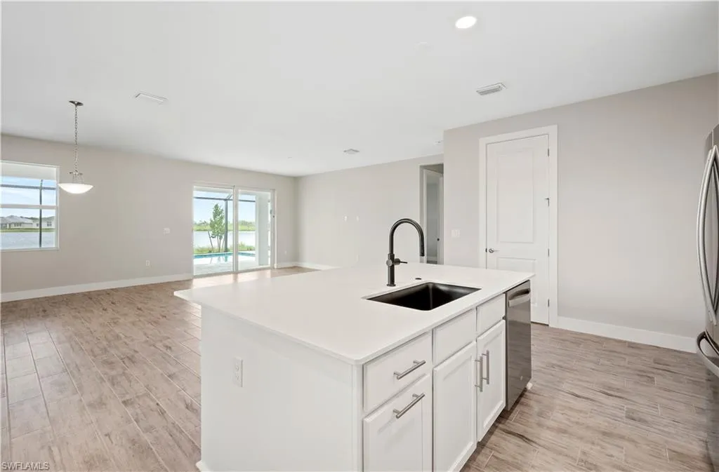 +55 WATERFRONT LUXURY HOME WITH PRIVATE POOL & SPA IN BABCOCK RANCH, FL This stunning new construction home is perfectly positioned on a serene lakefront homesite with desirable northern exposure, offering breathtaking water views from the main living areas and outdoor spaces. Enjoy the best of Florida living with your own private pool and screened enclosure, complemented by a spacious covered patio—ideal for year-round relaxation and entertaining. Inside, the open-concept floor plan showcases a gourmet kitchen featuring stacked upper cabinetry, gleaming quartz countertops, and premium stainless steel appliances—creating a sophisticated, functional centerpiece. Built to the highest builder codes and backed by a comprehensive builder warranty, this home is located outside the flood zone, offering added security. As part of Babcock Ranch’s vibrant 55+ natural gas community, residents enjoy access to an exceptional resort-style amenity center with a dedicated lifestyle director who curates engaging social events and activities year-round. The community amenities include a resort-style pool, state-of-the-art exercise room, golf simulator, putting green, pickleball courts, and tennis courts—everything you need for an active, fulfilling lifestyle. Experience the perfect blend of style, comfort, and innovation in America’s first solar-powered town. This is more than a home—it’s a lifestyle crafted for luxury, wellness, and connection. Please see MLS supplements for interior design selections and floor plan layout. Lot 4638