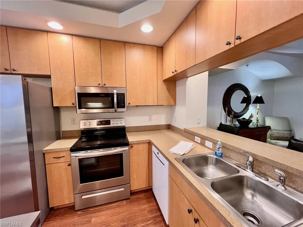 Step into comfort and convenience with this beautifully updated 2-bedroom, 2-bath condo located on the second floor of a quiet corner unit. The airy layout includes a welcoming foyer that flows into a spacious living area, perfect for both relaxing and entertaining. The stylish kitchen offers stainless steel appliances, generous cabinet space, and a casual dining nook. The thoughtful split-bedroom floor plan provides a private primary suite with dual walk-in closets and a modern en-suite bathroom featuring a large, step-in shower. The guest bedroom is paired with a full bath that includes a tub/shower combo. Updates throughout the home include luxury vinyl flooring, new ceiling fans, and fresh interior paint. The unit is also equipped with an in-unit laundry room with a full-size washer and dryer, and wide interior doors for easy accessibility. Enjoy breezy evenings on the lanai, accessed through sliding doors from the main living space. Van Loon Commons is a gated community that offers something for everyone: pool and spa, fitness center, clubhouse with kitchen, walking paths, and a warm, pet-friendly atmosphere.