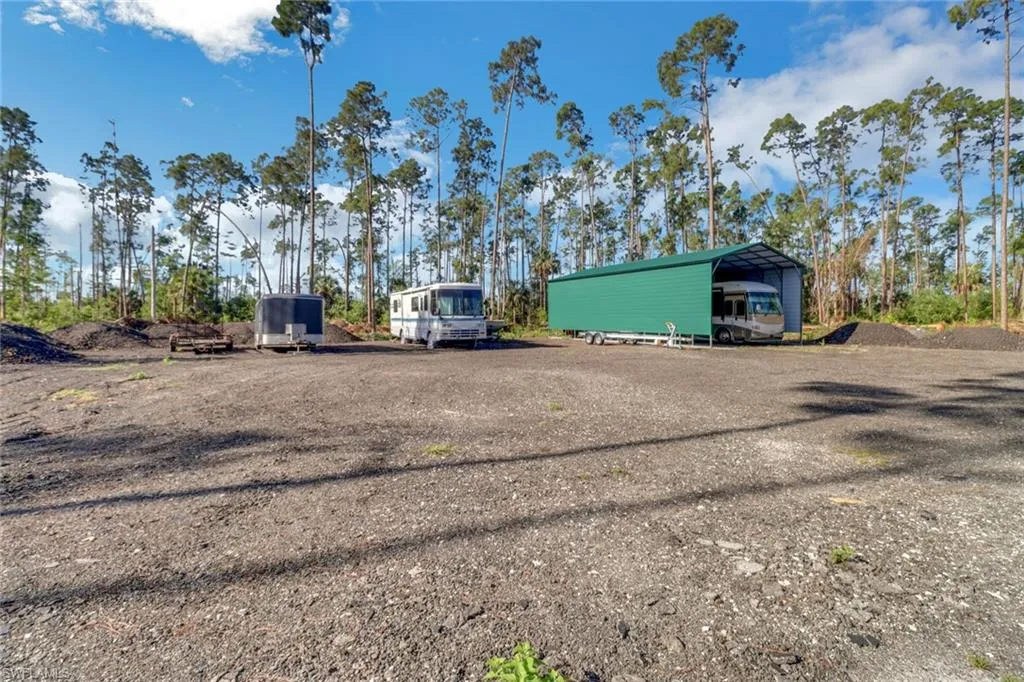 EXCLUSIVE RETREAT NEAR TOWN!! Seize the opportunity of a lifetime with this extraordinary estate nestled on 30 ACRES OF PRISTINE PINE FOREST, right alongside the Hideout Golf Club. The front of this estate is the epitome of Southern charm, offering an oversized covered porch, perfect for rocking, relaxing and watching the many deer and wildlife pass you by. As you step inside this meticulously crafted retreat, the warmth of the open-concept design and wood detailing create an unparalleled sense of home. Revel in the spaciousness, highlighted by tray ceilings and exquisite crown molding throughout. For cozy evenings, THE GAS FIREPLACE in the bonus room offers the perfect ambiance for relaxation. Indulge in the comfort of the master suite, featuring expansive walk-in closets and a stunning walk-in shower. All 3 of the en-suite guest bedrooms are spacious and offer lots of natural light. The main living area offers three sets of French doors which seamlessly blend indoor and outdoor living, providing an ideal setting for entertaining or simply unwinding amidst the lush backdrop of your 30-acre sanctuary. The outdoor gas grill is any chef’s dream for creating along side the expansive pool and deck, in the serenity of nature. This home is equipped with thoughtful amenities, including a whole-house reverse osmosis water filtration system, hurricane shutters, and a propane gas kitchen. Convenience is paramount, with a circular paved driveway ensuring easy access. A NEW 16 FT. TALL, 25X50 MOTORCOACH STORAGE PORT is ready to protect your traveling investment. Plus, enjoy the freedom of no HOA fees and no water/sewer bill. Located just 5 minutes from Publix on Pine Ridge Rd. and Collier Blvd., this idyllic retreat offers both SECLUSION AND CONVENIENCE. Don’t miss your chance to make this dream property your own – schedule a viewing today!