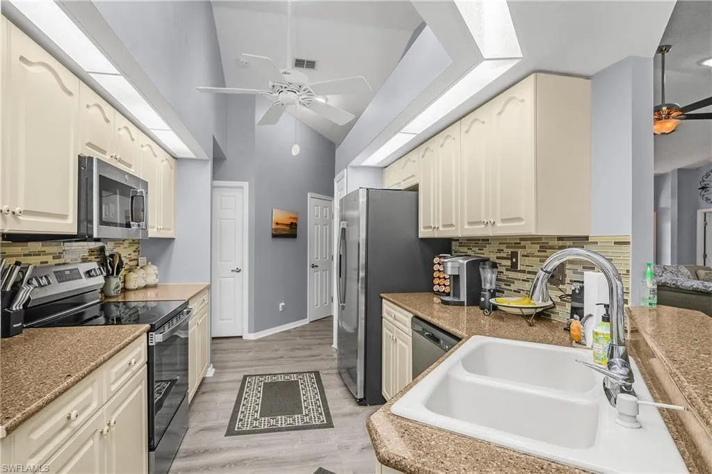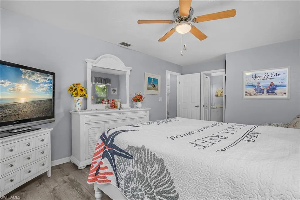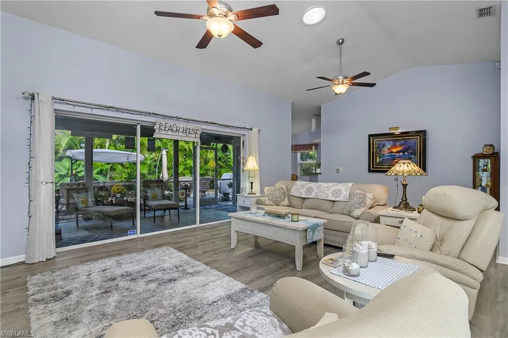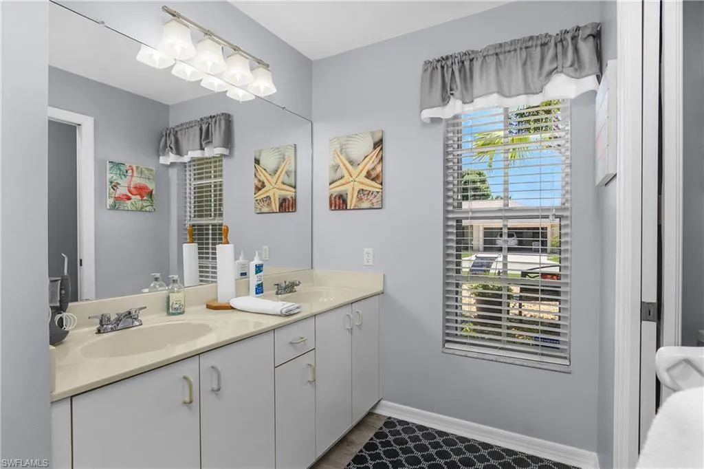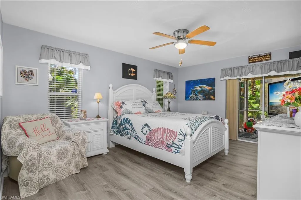 The primary suite offers a walk-in closet and a beautiful on-suite bathroom. Both bathroom showers in the home were tastefully remodeled in 2025 and feature stunning new tile. The entire house is connected through a Luxury Lifeproof Floor. Step outside to enjoy the expanded paver patio and professionally landscaped yard. Whether sipping your morning coffee in the lanai or hosting friends in the backyard, this home makes outdoor living a daily pleasure. Fountain Lakes is well-known for doing very well in the hurricanes, it’s convenient location to Coconut Point Mall, low HOA fees—just $380 quarterly—while offering a long list of amenities. Residents enjoy a 9-hole golf course (included with HOA), a community pool, tennis, bocce, shuffleboard, pickleball, a fitness center, library, billiards, BBQ and picnic areas, a clubhouse, and walking trails. It’s a welcoming neighborhood that encourages an active and social lifestyle.