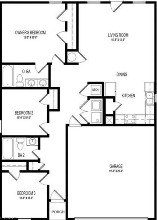 Built in 2019, the home offers a bright open layout with porcelain tile floors throughout, fresh paint, and an upgraded kitchen with newer appliances. Outside, enjoy a huge concrete patio, landscaped yard, and updated water treatment system with sprinklers.