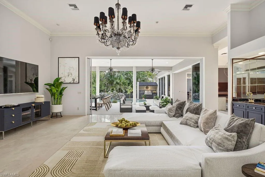 Exquisite estate home on an oversized corner lot in Edgewater, the premier neighborhood of Gulf Harbour Yacht & Country Club within a short walking distance to all of the wonderful amenities, including private island with Sandy beach, state of the art fitness facility and spa, and walking paths. This unique home is an entertainer’s dream perfect for a family offering 5,767 square feet of total living space, including three en-suite bedrooms, a sauna, office/den, and a flexible bonus room that can serve as a fourth bedroom, and travertine marble flooring throughout the home as well as outdoor lanai. Two fireplaces and soaring lighted volume ceilings with large crown moldings throughout create a grand, light-filled ambience. The updated custom kitchen features gas,Viking stove, wood cabinetry, quartz countertops, oversized kitchen, a center island with breakfast bar, and a butler’s pantry,all open to the family room and formal dining area. The main floor primary suite provides tranquil privacy with a spa-like en-suite, featuring a Jacuzzi jetted tub and two walk-in closets with built-in organizers. Enjoy Florida’s resort lifestyle in your private backyard oasis: a expansive paver stone lanai with a pool, spa, outdoor kitchen, and a separate pool bath. Additional highlights include a 3-car oversized garage, newer roof, recently resurfaced, pool, and fresh exterior paint. Edgewater offers very low HOA fees and is within easy walking distance to Gulf Harbour Yacht & Country Club’s amenities: Private beach,walking paths,national-ranked golf and tennis facilities and a 186-slip deep-water marina with direct access. This home also includes a 38-foot dock for sale in Gulf Harbour Marina and a transferable sports membership option to Gulf Harbour Yacht & Country Club,(not included in home sale) Schedule your private tour today and make resort living your everyday reality.