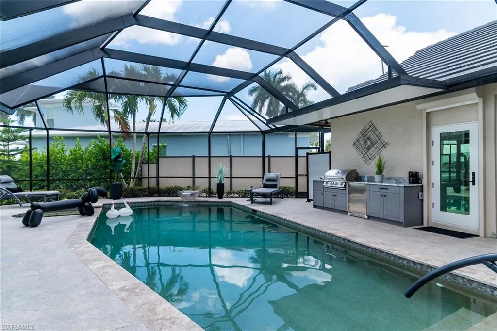 Imagine waking up to the soft glow of sunrise reflecting off the tranquil waters of Port of the Islands, where manatees play and the Everglades stretch endlessly toward the horizon. From your private dock, enjoy direct access to the Gulf of America, secluded beaches, and some of the best fishing in Southwest Florida. Welcome and step inside 123 Newport Drive, where perfection is better than new – where paradise living meets exquisite design. This fully transformed residence features over 2600 square feet under air, with 4 bedrooms, 2 1/2 baths, and a 2-car garage. Renovated with precision, it showcases upgrades and finishes that surpass today’s new build standards, blending luxury, functionality, and lasting value. Nestled in a peaceful non-gated community with no HOA, this corner waterfront home is a rare find offering direct access to the Gulf of America and a lifestyle unlike any other. Inside, soaring 14-foot vaulted ceilings highlighted by a custom 40-foot birch wood beam create a dramatic first impression. New hurricane impact windows and doors fill the home with natural light, accentuating the high-end finishes and coastal elegance throughout. At its heart, the designer chef’s kitchen stands out with a massive quartzite island and new electric fireplace, perfect for entertaining family and friends. Step outside, and the magic continues. Your outdoor oasis includes a brand-new Trex dock with a new 16,500 lb boat lift and custom canopy to protect your vessel, providing effortless direct access to water adventures. Entertain with ease in the custom outdoor kitchen including beverage center, take a dip in the heated pool and spa with lighted water features, refresh in the cold plunge tub, or rinse off in the enclosed outdoor shower. Professional landscaping, enhanced by over $25,000 in upgrades and custom lighting, creates a resort-like ambiance day and night. For peace of mind, the home is equipped with a whole-house Generac liquid-cooled generator, a new custom cement tile roof, advanced water filtration throughout the home, and a custom security system including cameras. The home also features 2 new A/C systems plus a mini split in the garage, ensuring year-round comfort. The garage is designed with custom storage cabinetry and an epoxy-finished floor, completing this immaculate property. Why wait for new construction when your opportunity to own a luxury waterfront, water-direct home is NOW? 123 Newport Drive offers an exceptional opportunity to experience the best of coastal living in paradise. This property also presents an excellent investment opportunity for seasonal rentals, offering strong income potential in one of Southwest Florida’s most desirable waterfront communities. Recently appraised for over $1.8 million, it delivers exceptional value for a luxury home of this caliber. See the feature sheet document for the entire list of features and upgrades.