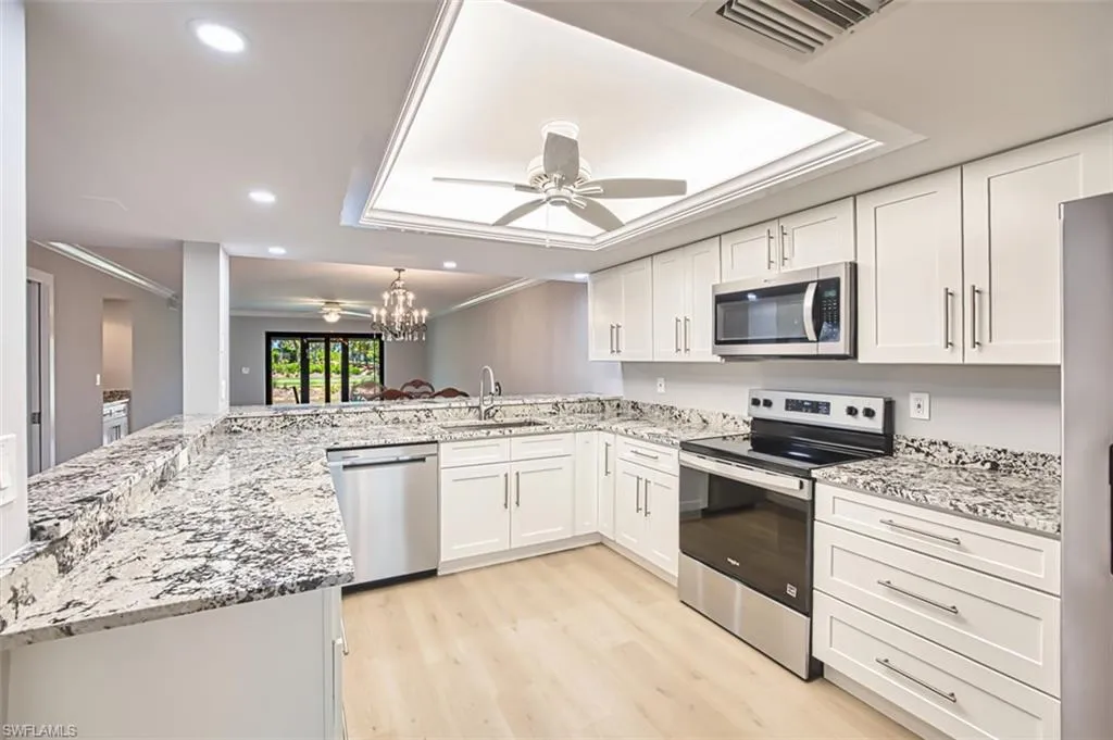 Welcome to Florida living at its finest with this beautifully updated 2-bedroom, 2-bath condo featuring a versatile den and sweeping views of the lake and golf course. This ground-level unit offers both comfort and style, with a spacious open layout and modern finishes throughout.