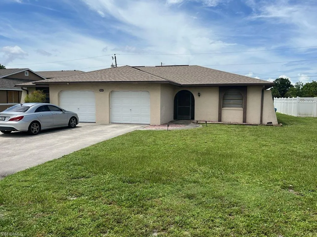 Discover this spacious and well-kept duplex in the highly desirable Southeast Cape Coral area, offering convenience, comfort, and strong rental appeal. Each side features 2 bedrooms, 2 bathrooms, and 1,121 square feet of living space, along with a one-car garage with automatic opener.