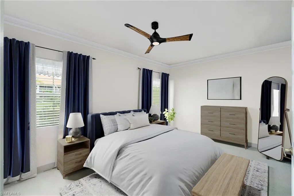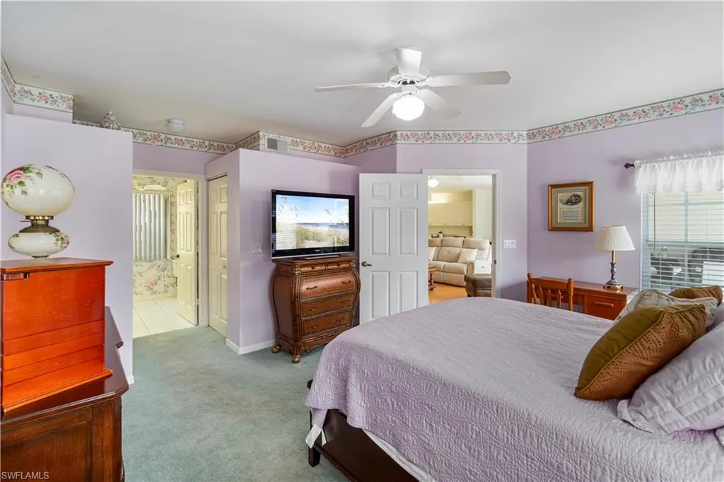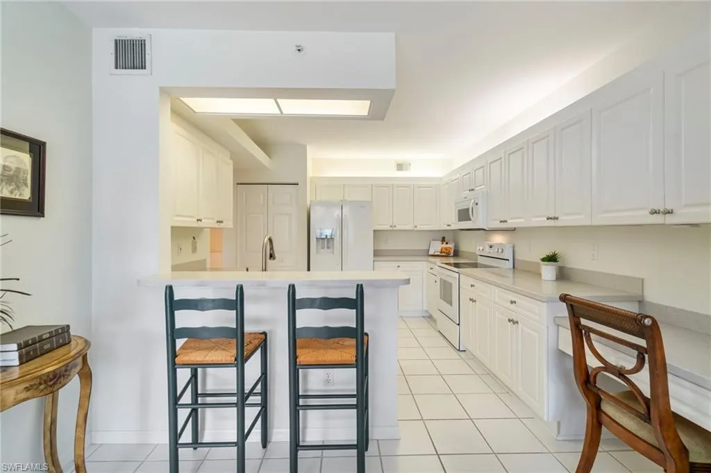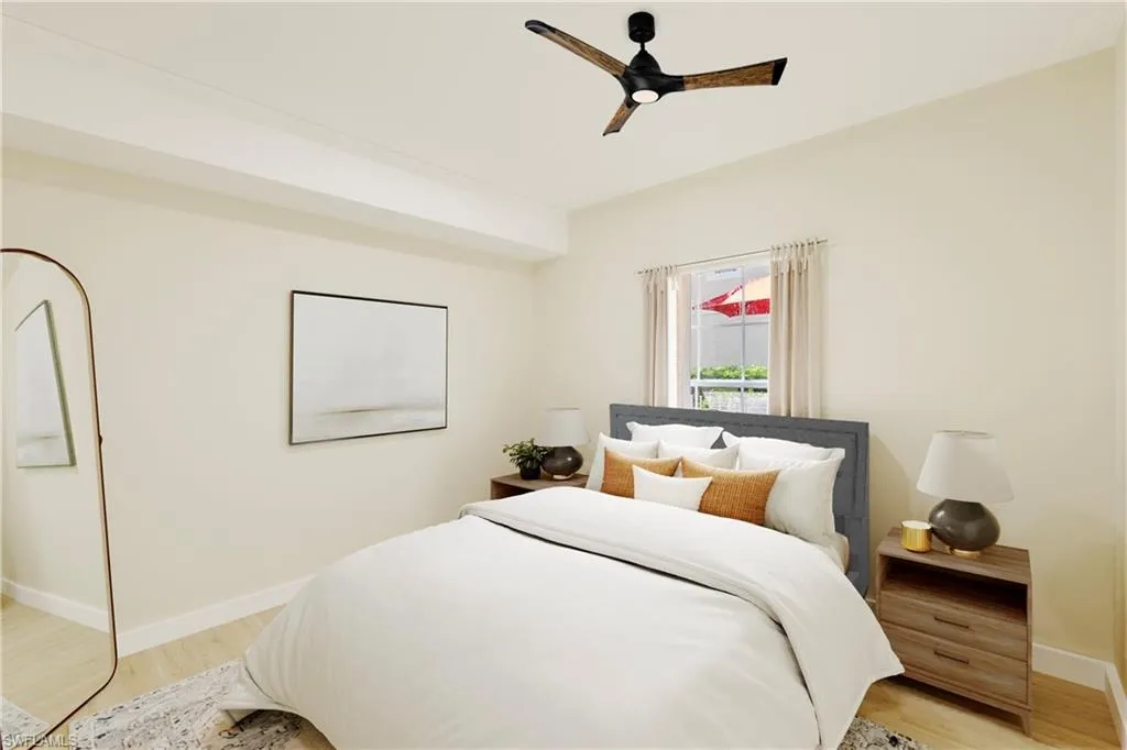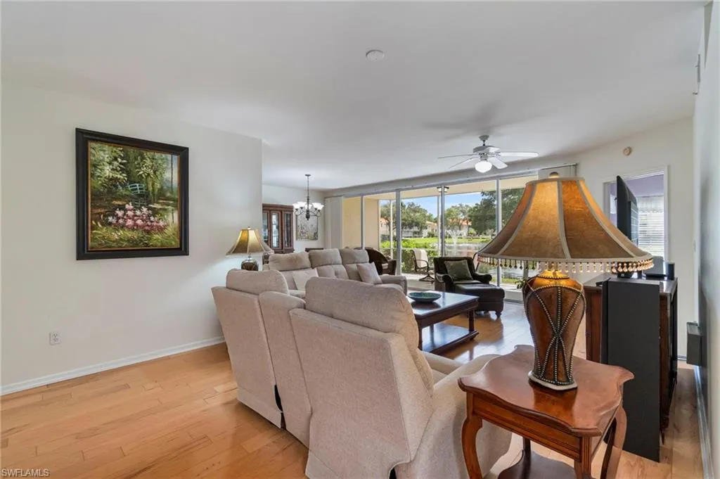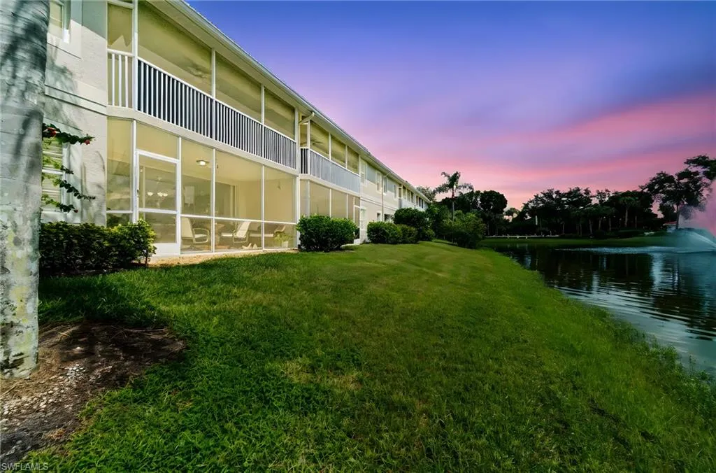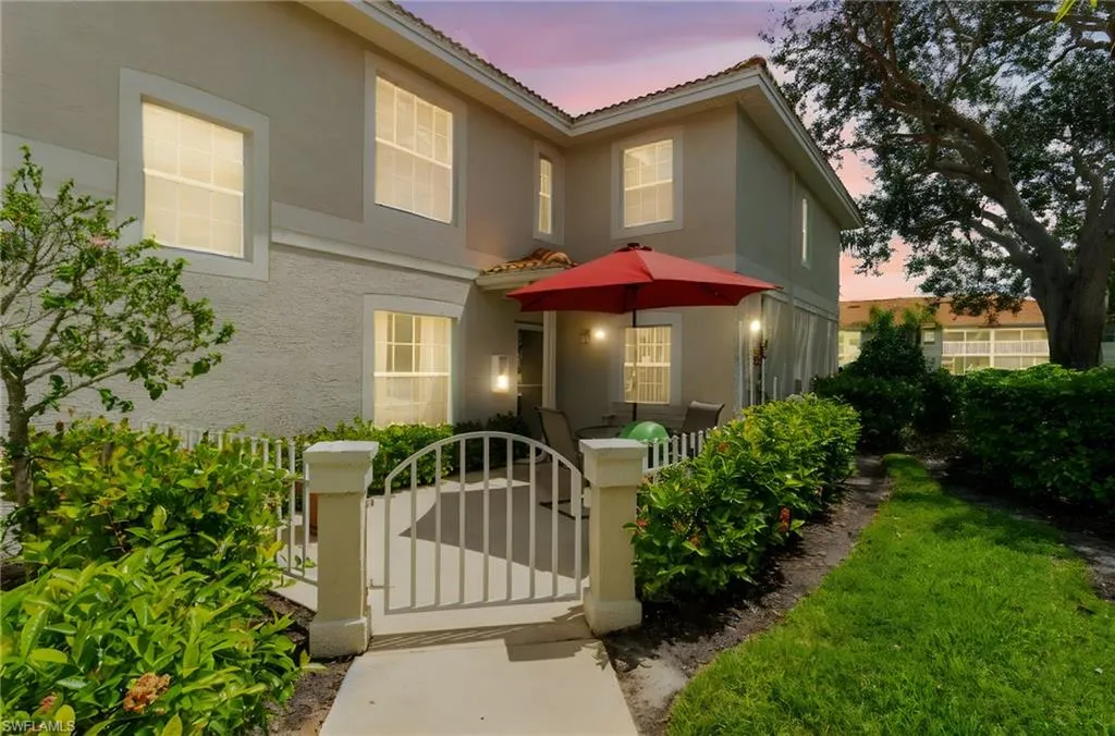 Live the North Naples lifestyle in this Updated Lakeview Carriage Home – 3 Miles to the Beach. This beautifully updated 2BR/2BA residence lives like a single-family home but offers all the convenience of a condo. Enjoy an extra-deep garage and peaceful lakefront living, with a back lanai that showcases two fountain views and frequent wildlife sightings, including pelicans, herons, ducks, and turtles. The front patio offers plenty of space for a grill and patio table—perfect for entertaining.