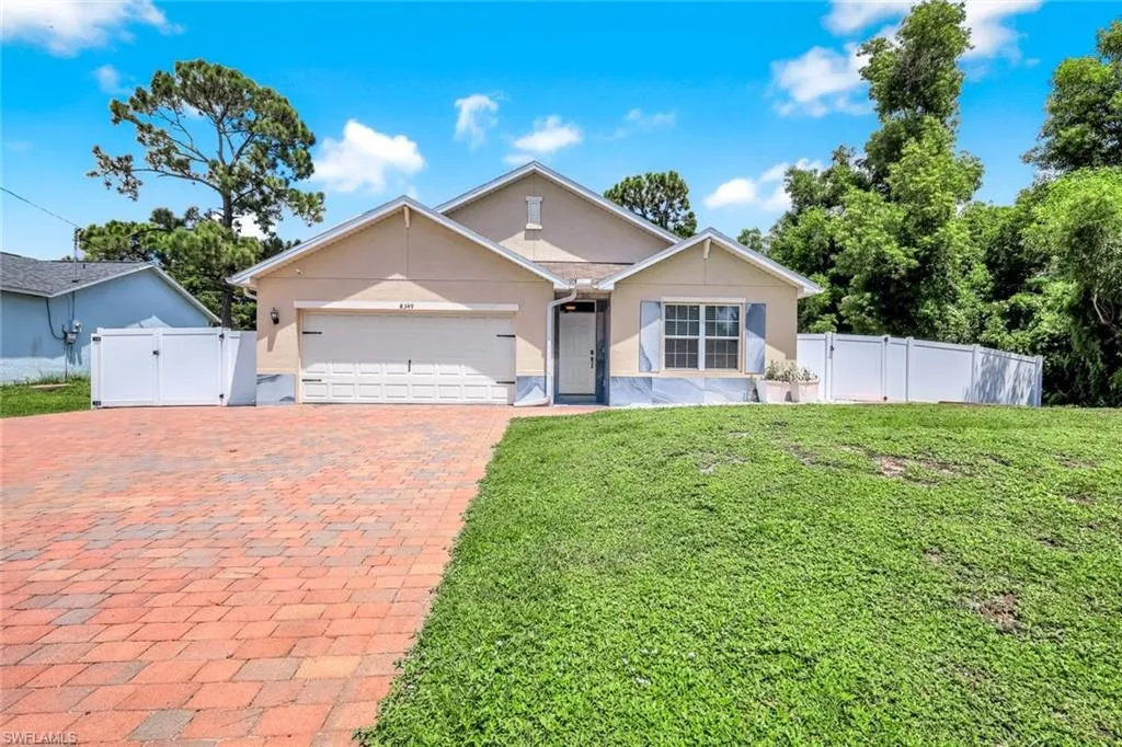 Move-In Ready SMART Home with High-End Finishes, New Landscaping & Prime Location! This beautifully upgraded 4-bedroom, 2-bath, 2-car garage SMART home offers 1,828 sq. ft. of open-concept living in a centrally located neighborhood—just minutes from Florida Gulf Coast University (FGCU), I-75, and Southwest Florida’s top beach communities. Built in 2019 by DR Horton, this home blends modern design, comfort, and functionality. Interior Features Include: Quartzite natural stone countertops & stunning waterfall kitchen island, Tile backsplash & custom lighting throughout, Wood style flooring in all bedrooms; oversized tile in main living areas, SMART home technology for added convenience and energy efficiency, The owner’s suite is a serene retreat featuring a walk-in closet and a spa-style en-suite bathroom with a glass-enclosed tile shower, dual shower heads, double vanities, and a backlit mirror. The flexible floor plan has been modified to adjoin the 4th bedroom with access to the primary bath—creating the perfect use as not only a 4th bedroom but also as a home office, nursery, or private den. A true split layout offers two additional bedrooms and a spacious shared bath on the opposite side of the home. Step outside to your fully fenced backyard, complete with new professional landscaping, a covered lanai, paver patio, and plenty of space to add a future pool. The expanded pavered driveway offers ample room for guest or multi-vehicle parking. Additional highlights include a Whole-house water treatment & filtration system, Separate laundry room, Move-in ready condition—no updates needed! Conveniently located near RSW Airport, Miromar Outlets, shopping, dining, and beautiful Gulf beaches, this home is perfect for full-time living, seasonal getaways, or investment potential.