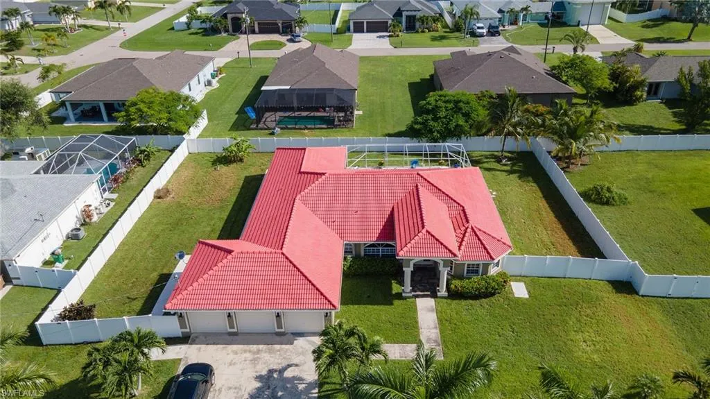 This spacious 4 bedroom, 3.5 bath residence with a 3-car garage has been fully updated and meticulously maintained. Sitting on a triple lot, the property features a pool with spa, electric heater, and screened enclosure for year-round enjoyment. Inside, you’ll find an upgraded kitchen, solar-tinted windows with plantation shutters, diagonal porcelain tile flooring, and a luxurious master suite with dual sinks, a separate tub & shower, and new fixtures. The entire home was recently renovated, including a new 5-ton AC unit, water heater, refrigerator, washer, and freshly updated master bath. Additional features include: accordion storm shutters, tile roof, automated sprinkler system, intercom with AM/FM radio, in-wall pest defense system, professionally installed garage cabinetry with painted flooring, and two automatic garage door openers. City water and new sewer are already in place. Call or text today for your private showing!