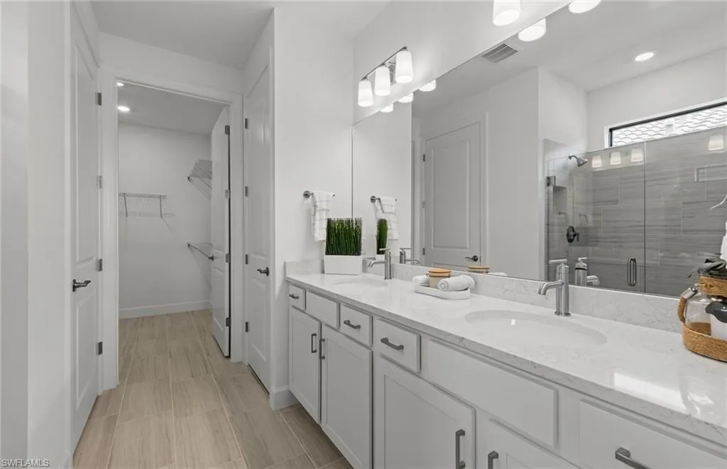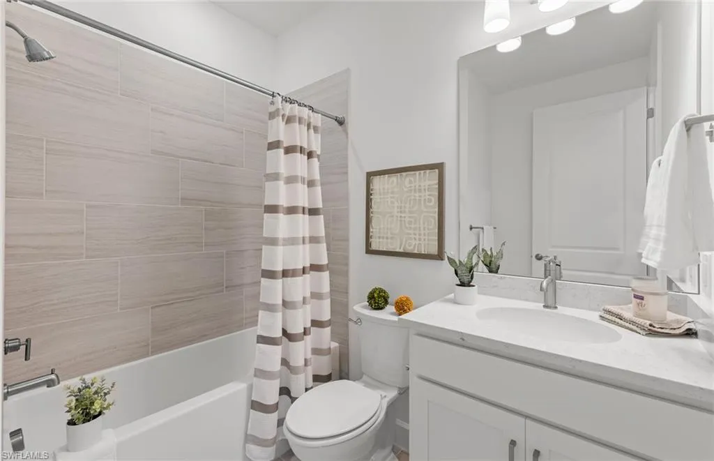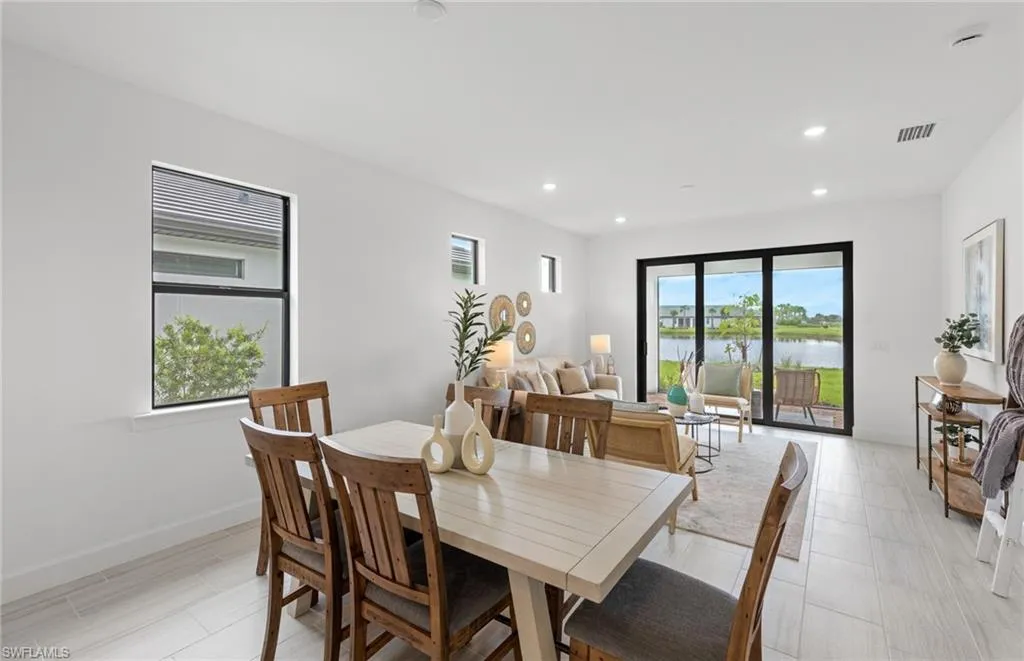 Welcome to this beautifully appointed Contour floorplan featuring 2 bedrooms, 2 bathrooms, and a versatile den, ideal for a home office or guest space. Designed with comfort and style in mind, this home showcases white cabinetry with quartz countertops, built-in kitchen appliances, and elegant 12″ x 24″ tile flooring throughout. Every detail has been thoughtfully considered, including 8′ interior doors, 5″ baseboards, and impact windows for peace of mind and energy efficiency. The laundry room features upper cabinets for extra storage, while the garage includes a utility sink, epoxy flooring, and is prepped for convenience and durability. Outdoor living is made easy with a tile roof and pre-wiring for a future pool and spa, creating the perfect opportunity to design your own backyard retreat. This move-in-ready home blends modern finishes with practical upgrades, offering comfort, quality, and low-maintenance living at its best. Located in Del Webb Naples, a premier 55+ resort-style community, residents enjoy access to over 30,000 square feet of amenity space across two stunning clubhouses: The Oasis Club and Grand Hall. The community is home to an 18-hole championship golf course (optional membership), two resort-style pools including an 8,000 sq. ft. beach-entry pool and a lap pool, a fitness center, movement studio, golf simulator, fire pit lounge, and The Rusty Putter Bar & Grille. Outdoor enthusiasts will love the 12 lighted pickleball courts, tennis courts, bocce ball courts, community garden, and miles of walking and biking trails. With a full calendar of events—including game nights, fitness classes, arts & crafts, and social gatherings—Del Webb Naples offers an unmatched lifestyle designed for relaxation, recreation, and connection. Live the active adult lifestyle you’ve dreamed of in a beautifully upgraded new home.